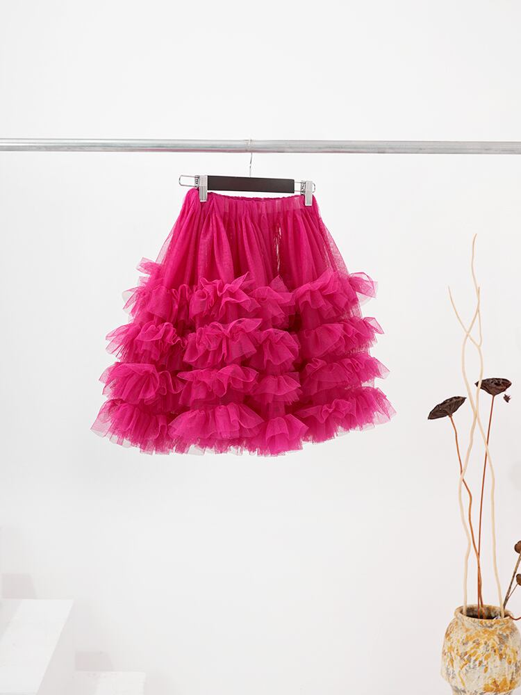[EWQ] ウエスト メッシュ A ライン スカート赤弾性ティアレッド ガーゼ ミニ スカート夏潮オールマッチ服 41 エラスティック 伸縮 サマー 夏物 Aライン