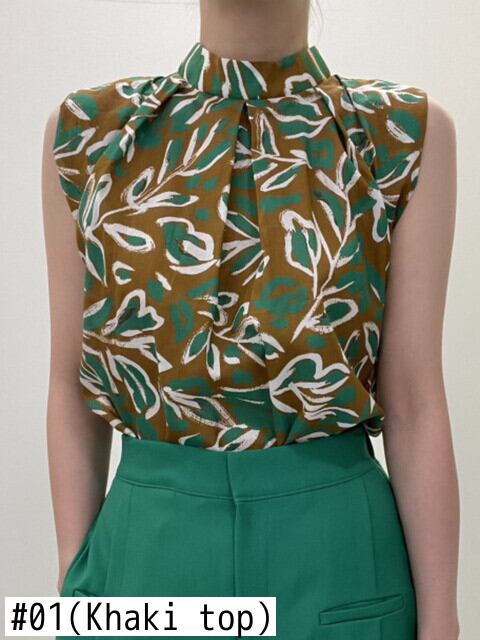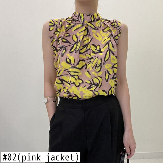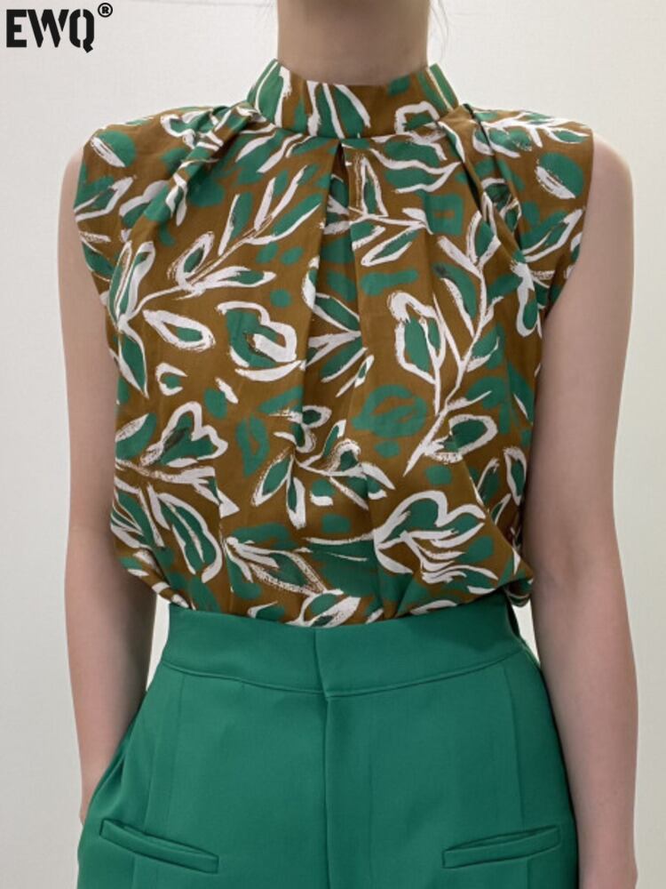 【EWQ】シック スタンドネック カラフル ベスト コントラストカラー プリント ノースリーブ タンクトップ サマートップ 16Y8386 夏物