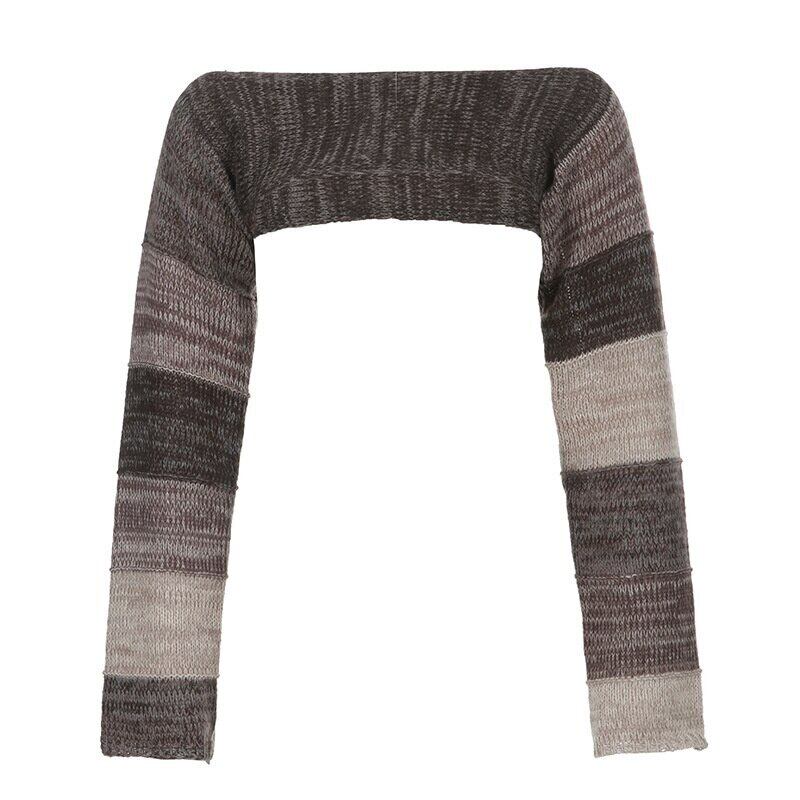[EWQ] Y2K ストライプ中空アウトクロップ Tシャツトップセクシーヒップホップニット服長袖トップス Tシャツ夏潮 ロング サマー 夏物
