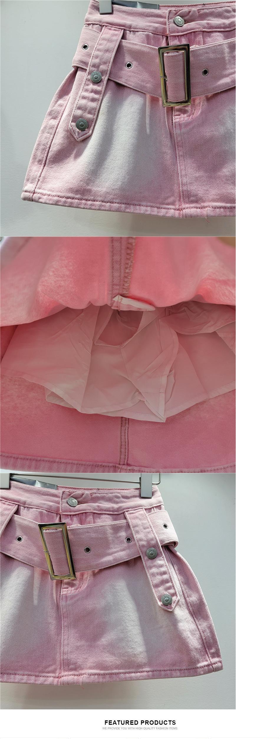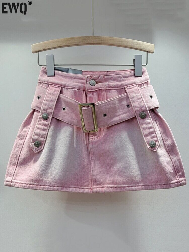 [EWQ] デニムスカートウエストストリート包帯ピンクミニスカート夏潮コントラストカラーファルダス 8695 サマー 夏物