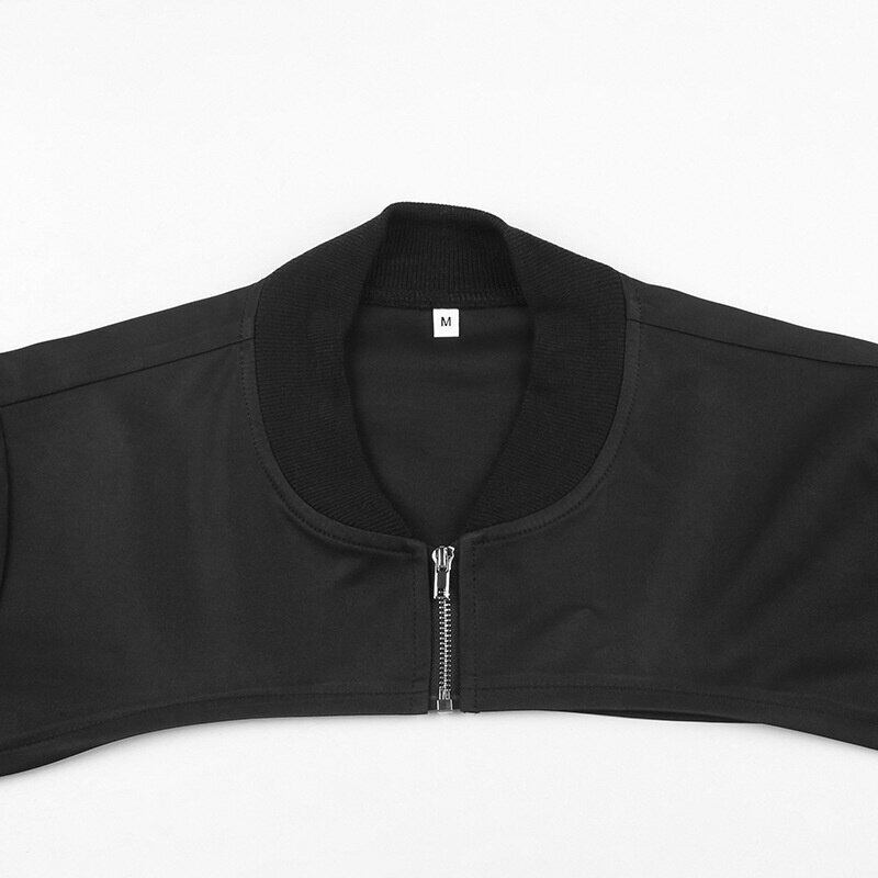 [EWQ] スーパー クロップド ジャケット ジップアップ ポケット パッチワーク ジャケット ストリート ブラック コート 春夏 577 スプリング 春物 サマー 夏物