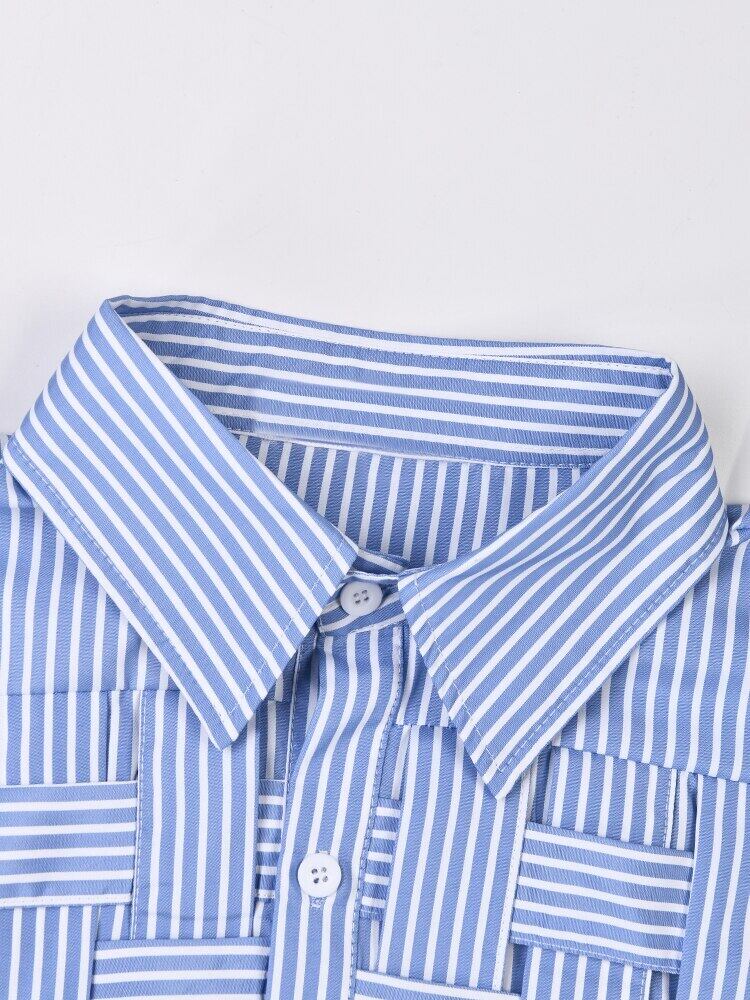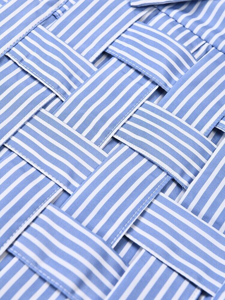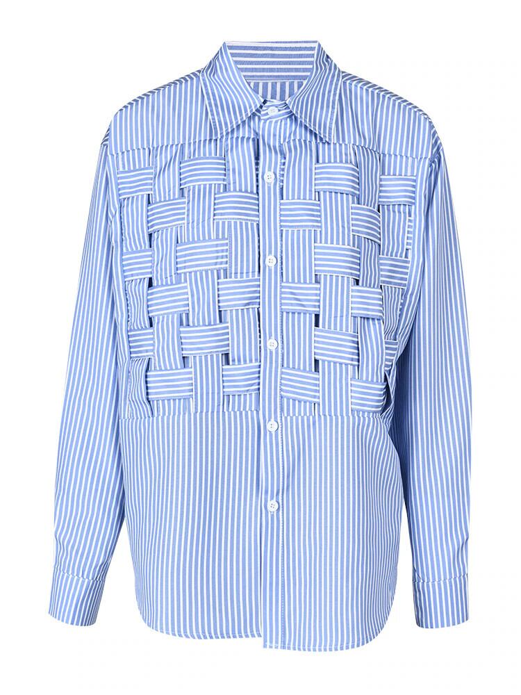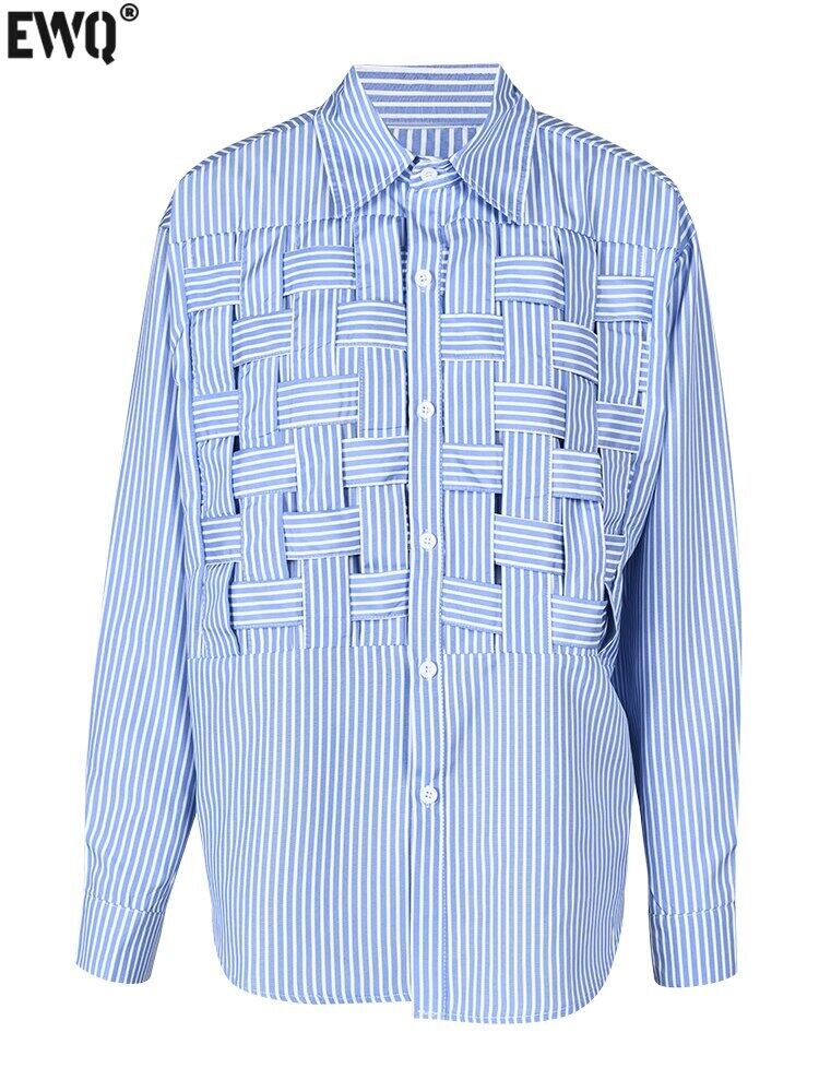 【EWQ】織り カットアウト 大きいサイズ ストライプ レディース シャツ 長袖 ブラウス 夏 春潮 オーバーサイズ トップス Y6940 ロング スプリング 春物 サマー 夏物