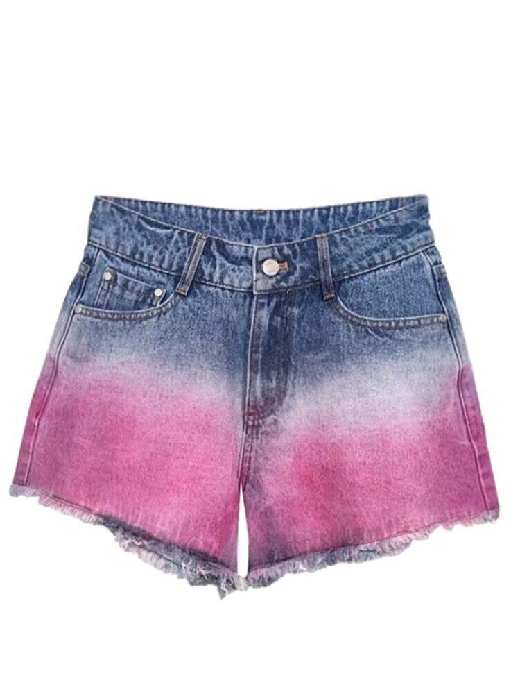 [EWQ] レディース グラデーション コントラスト ショート ジーンズ サマー タイド ストライプ ポケット テル ウエスト ストリート デニム ショーツ 夏物 ブルマー