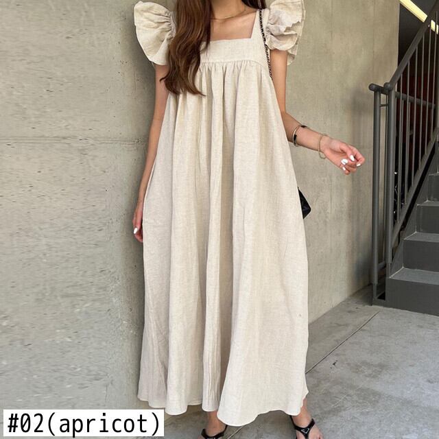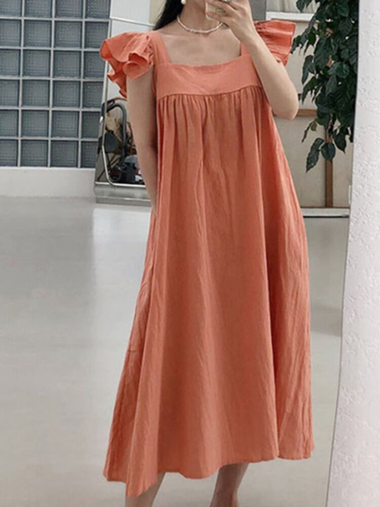 [EWQ] レディース スクエアネック プリーツ ルーズ カジュアル ドレス フライング スリーブ 無地 ドレス サマー Vestido 420 夏物 ソリッドカラー スクウェア