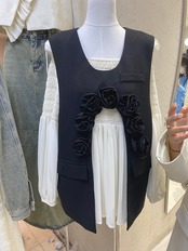 [EWQ] 3d フラワー O ネック ベスト サマー レディース ソリッド カラー ポケット スプライシング ノースリーブ ジャケット トップ 16Y7596 夏物 Oネック ソリッドカラー フラワーデザイン