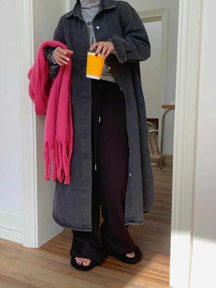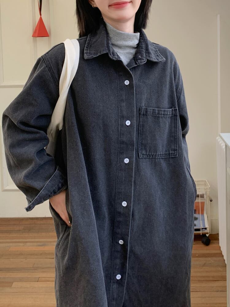 [EWQ] ソリッドポケットスプライシングシングルブレストデニムジャケット長袖ストリートジャケットコート春秋服 ロング スプリング 春物 オータム 秋物 ソリッドカラー