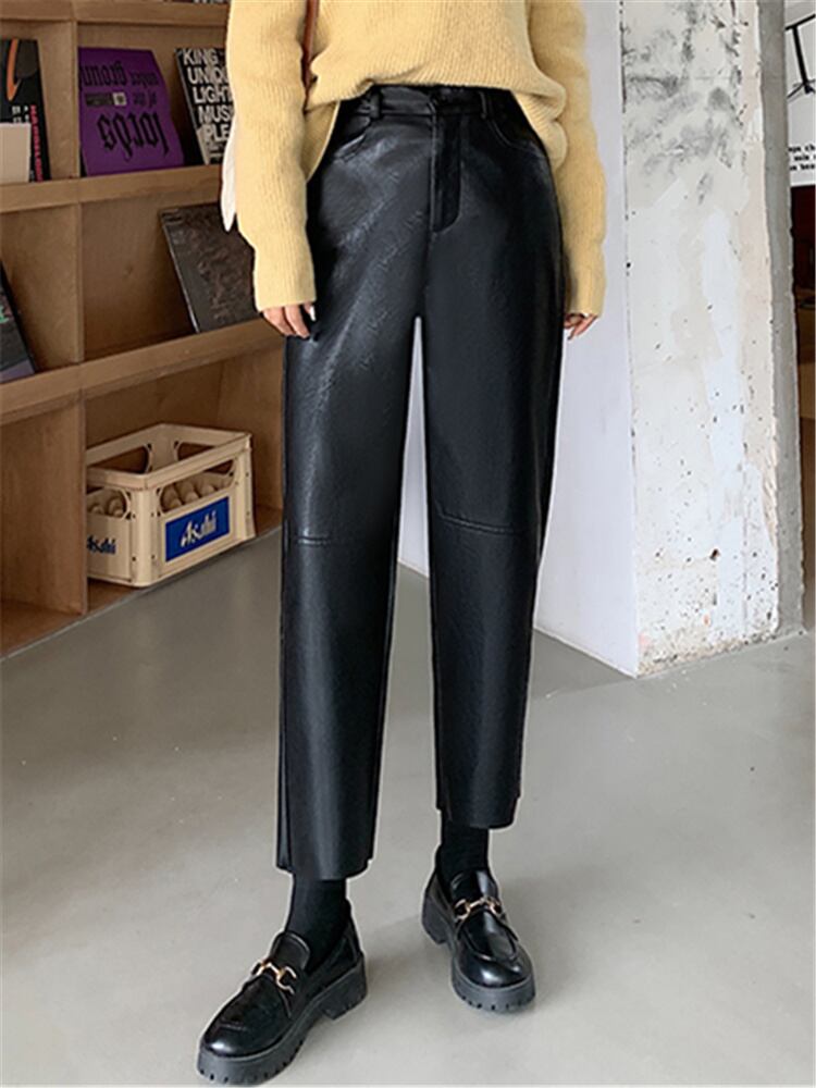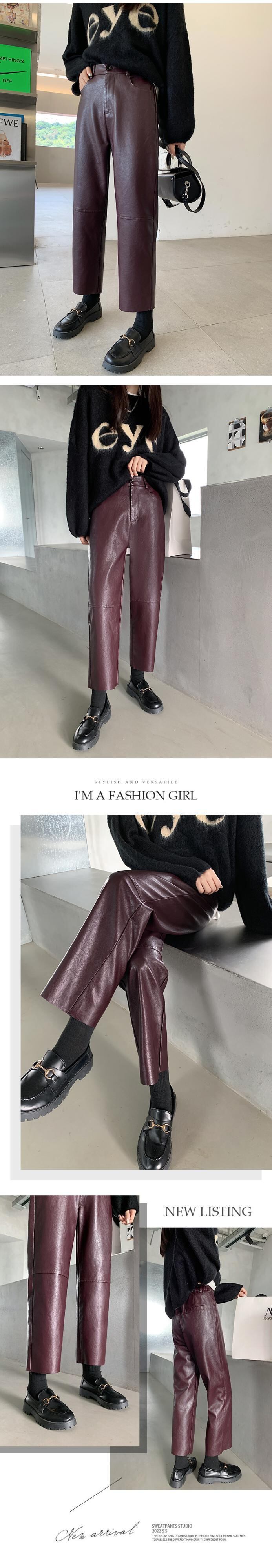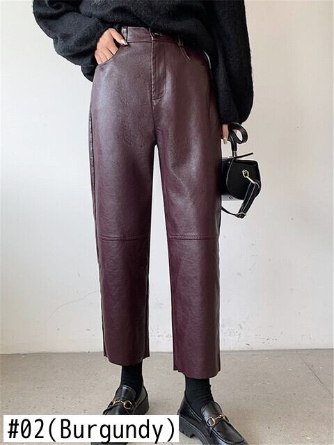 [EWQ] PU フェイクレザー ワイドレッグ パンツ レディース シック 春 冬 ウエスト ルーズ ストリート アンクル丈 パンツ スプリング 春物 ウィンター 冬物 ファー ワイドパンツ