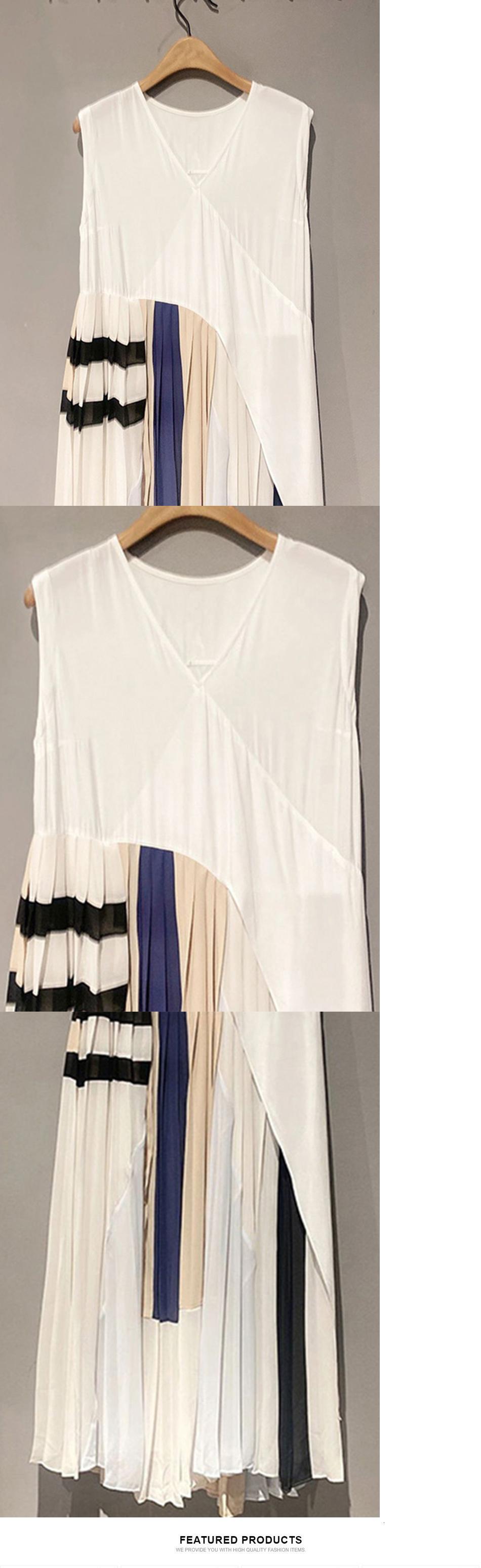 [EWQ] プリーツ コントラスト カラー ノースリーブ ドレス不規則パッチワーク タンク ドレス夏潮 Vestido 6Y8082 サマー 夏物