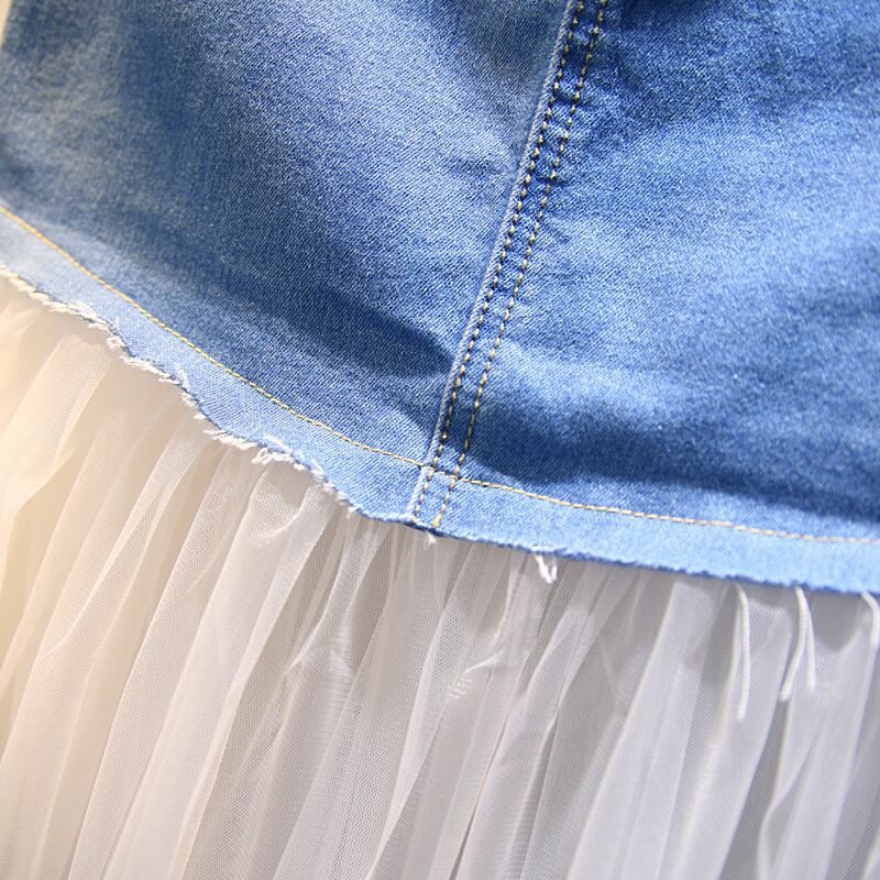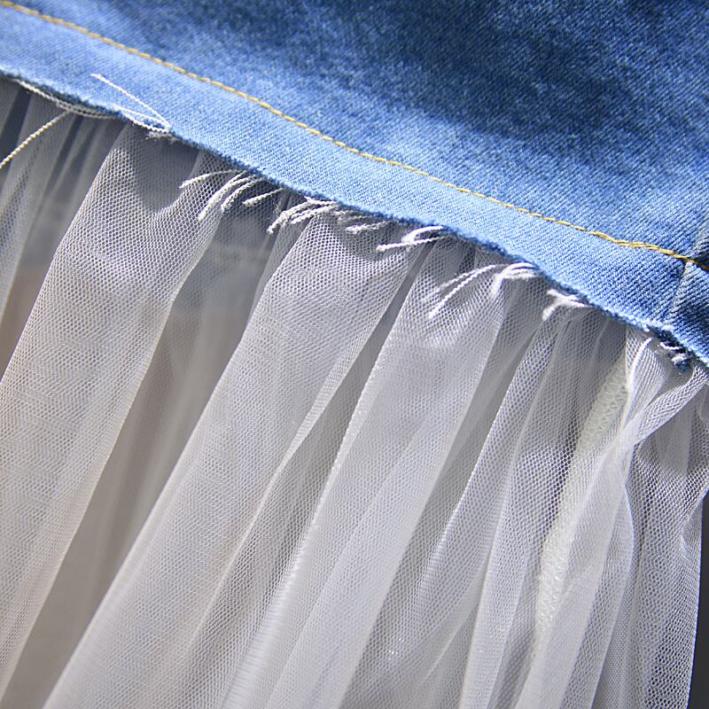 [EWQ] メッシュスプライシングデニムスカートスリムラップヒップウエストミッドカーフスカート夏潮オールマッチ服 628 サマー 夏物