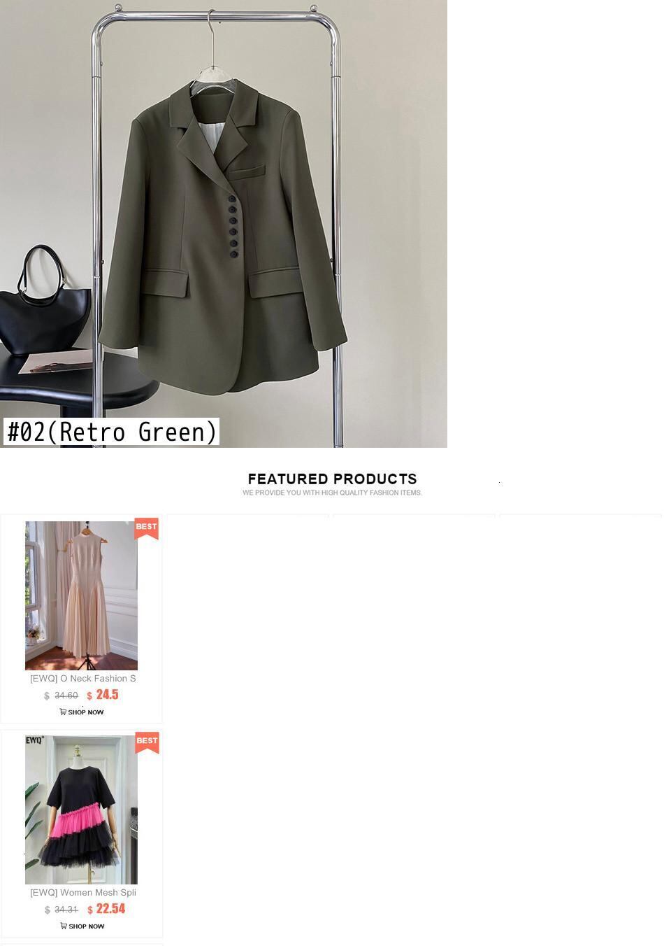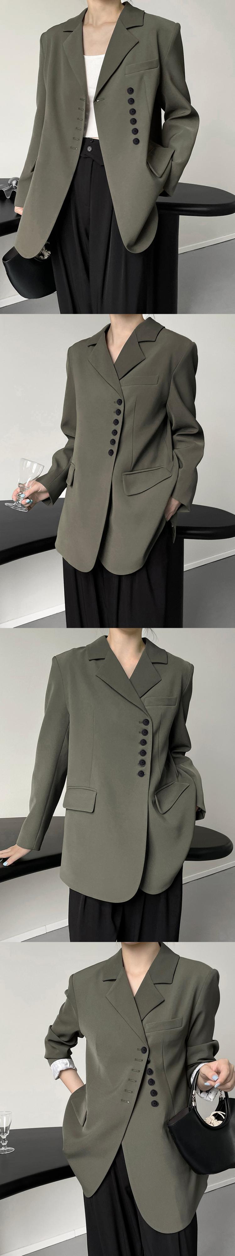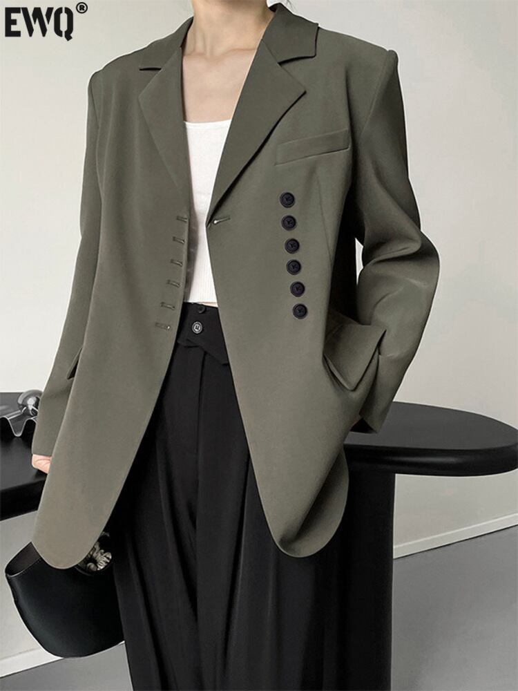 [EWQ] ノッチポケットブレザーコート無地長袖スーツジャケットコート春秋ボタントップ 6Y6507 ロング スプリング 春物 オータム 秋物 ソリッドカラー