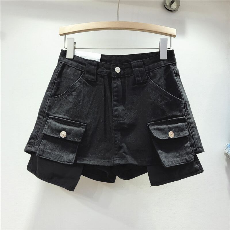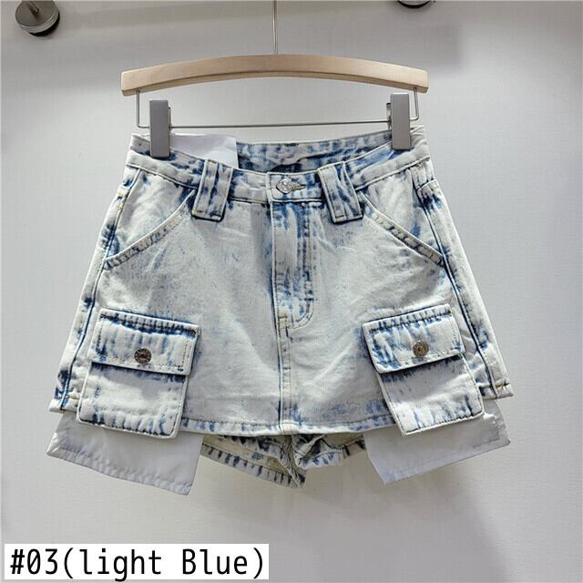 [EWQ] ポケット デニム ショーツ ウエスト ストリート パッチワーク ワン ボタン ホット ショート ジーンズ サマー タイド 16Y8932 夏物 ブルマー