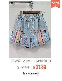 [EWQ] ビーズ愛グリーン ダイヤモンド デニム ショート パンツ夏潮ウエスト巾着ワイド脚ホット ショート ジーンズ サマー 夏物 ショーツ ブルマー ワイドレッグ ワイドパンツ