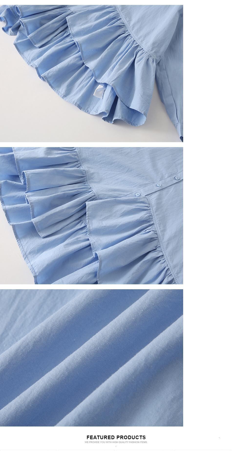 [EWQ] イレギュラー フリル スプライス シャツ レディース 長袖 ルーズ 因果 特大 ブラウス トップ 春潮 トップス ロング スプリング 春物