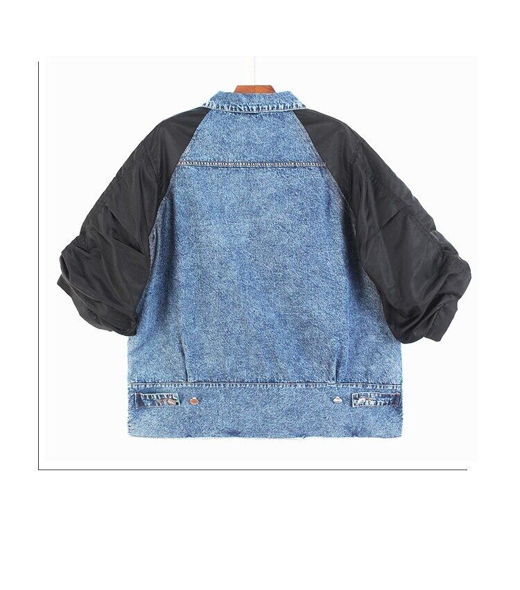 [EWQ] パフスリーブパッチワークデニムジャケット夏潮シングルブレストストリートジッパースプライシングジャケットコート サマー 夏物