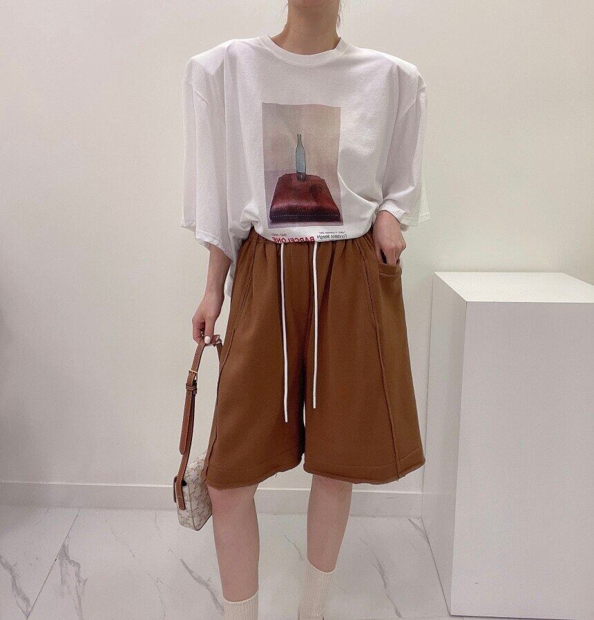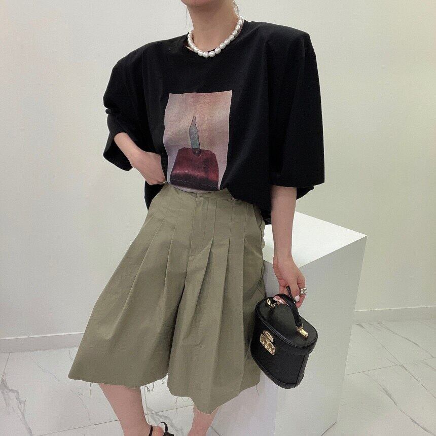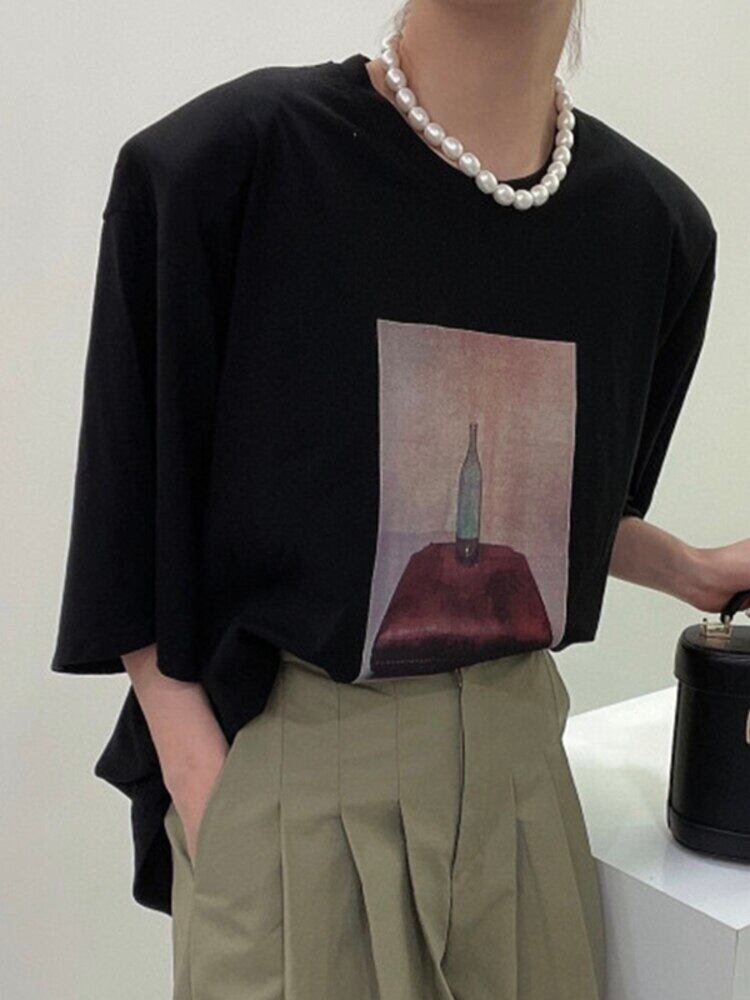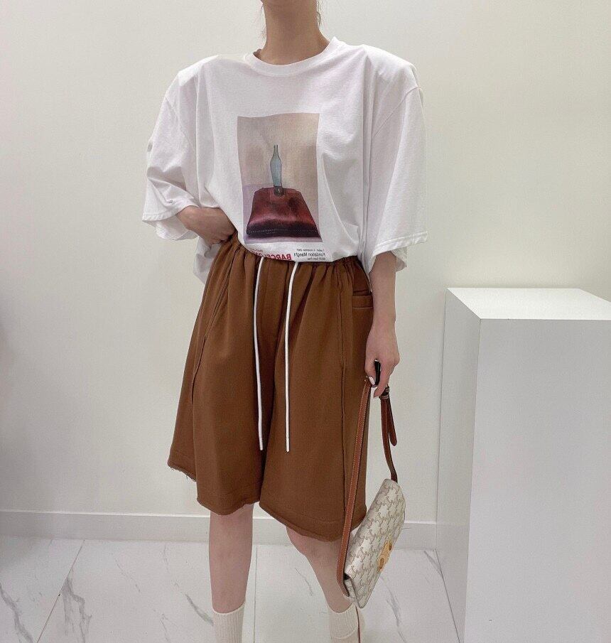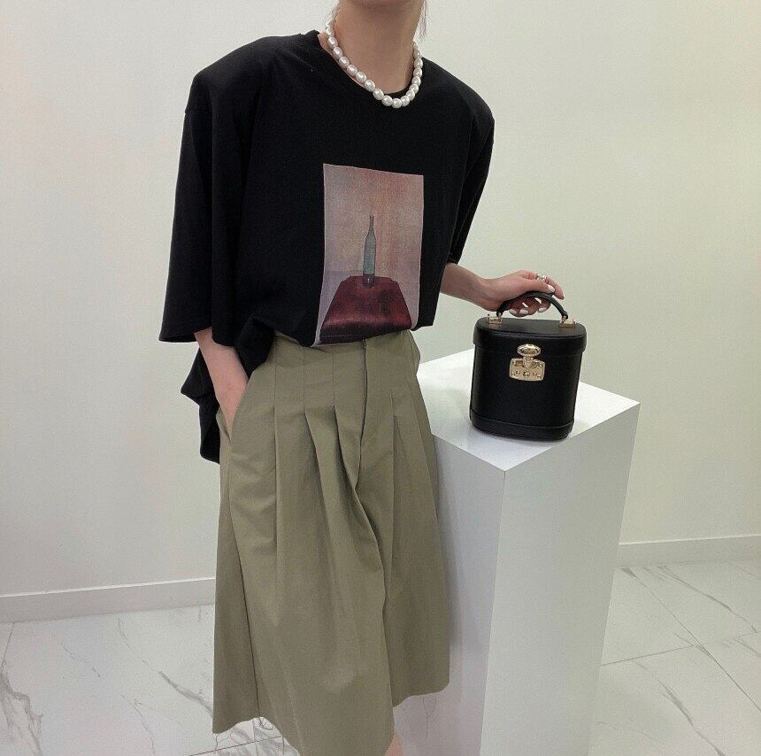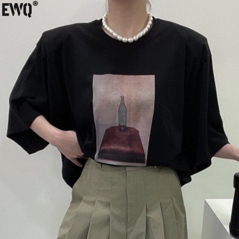 [EWQ] プリント O ネック Tシャツ夏潮コントラストカラー半袖 Tシャツトップトップス 6Y1584 ショート ハーフスリーブ サマー 夏物 Oネック