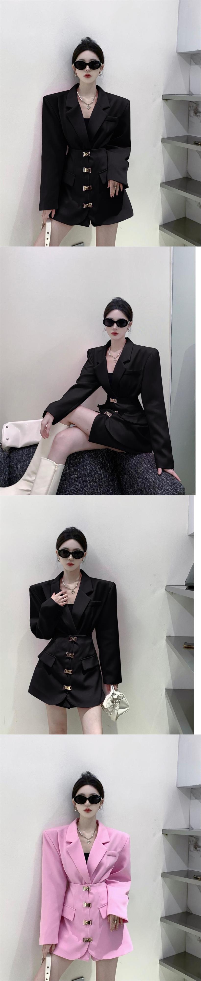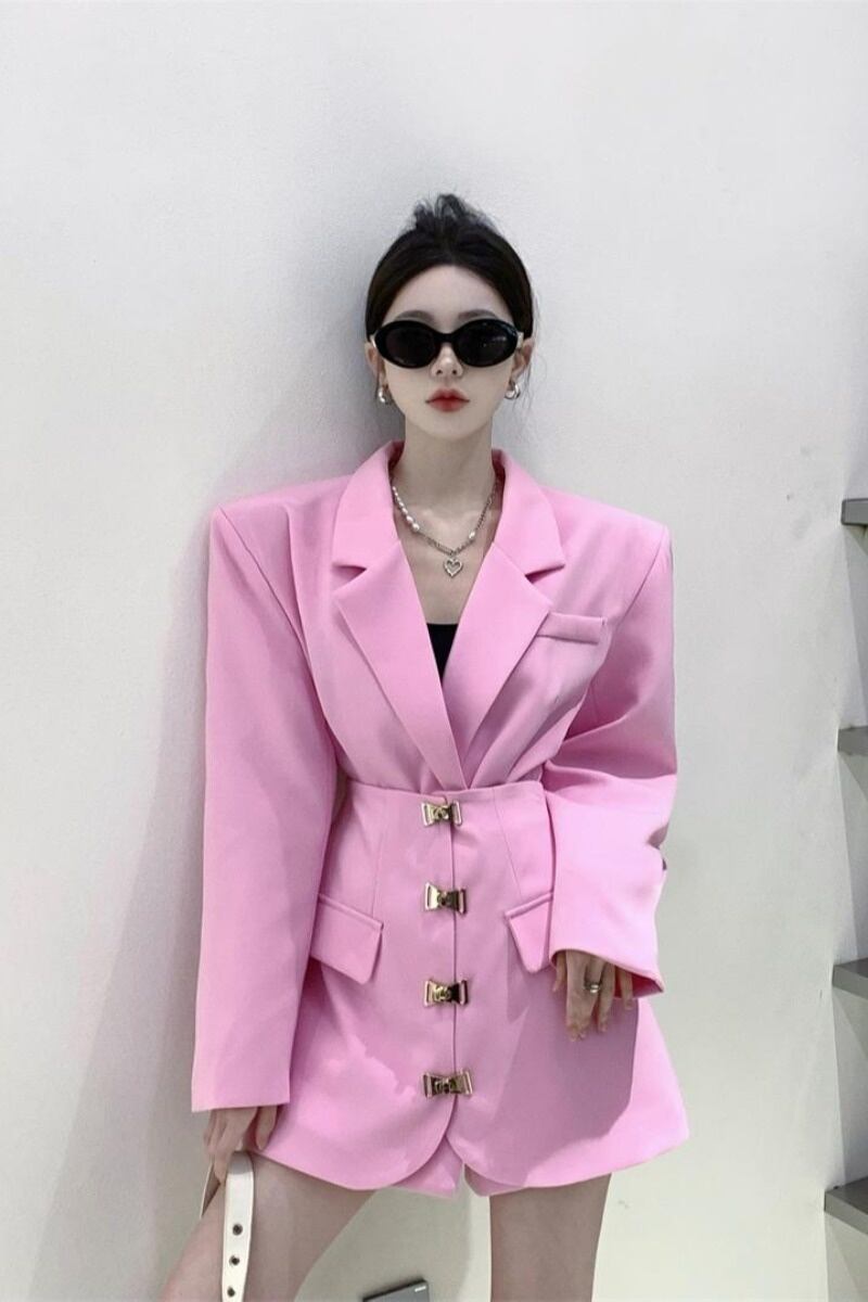 【EWQ】 長袖 ピンク コート ブレザー オフィス レディース + ハイウエスト シングルブレスト スカート 春 2点セット ハイウェスト ロング スプリング 春物 会社 学校 通勤や通学にも