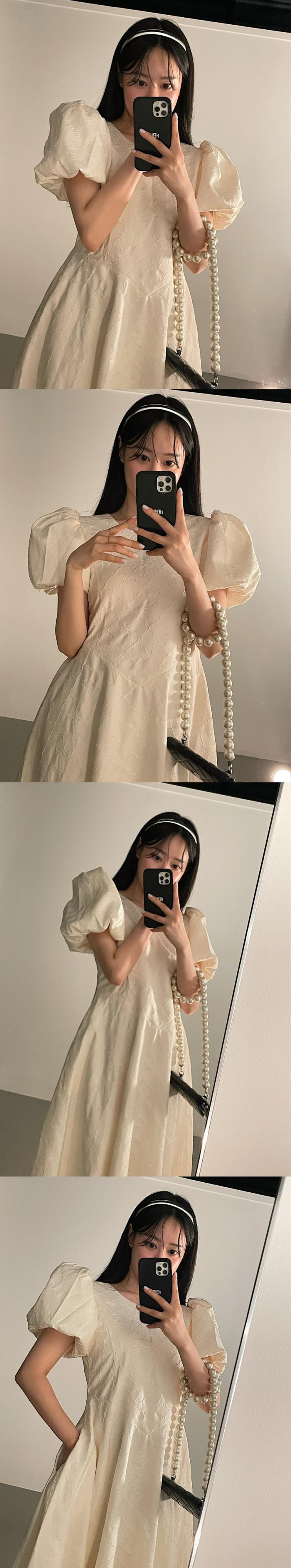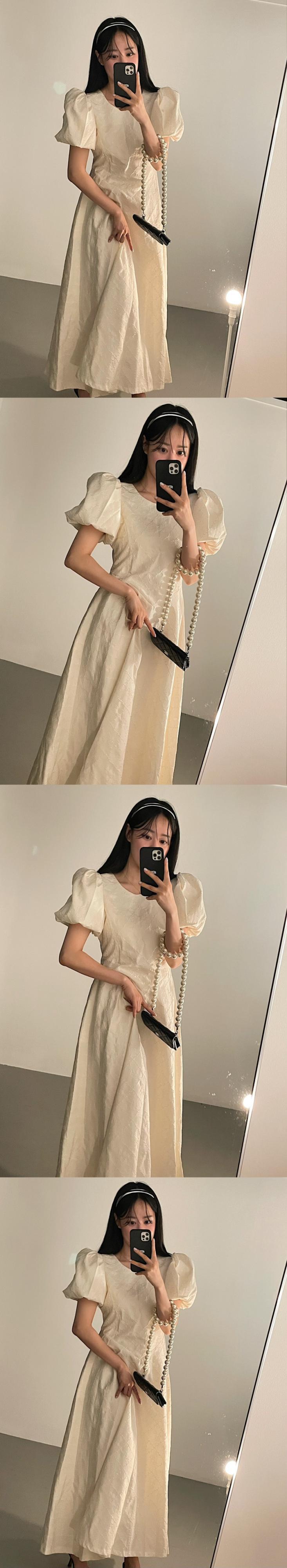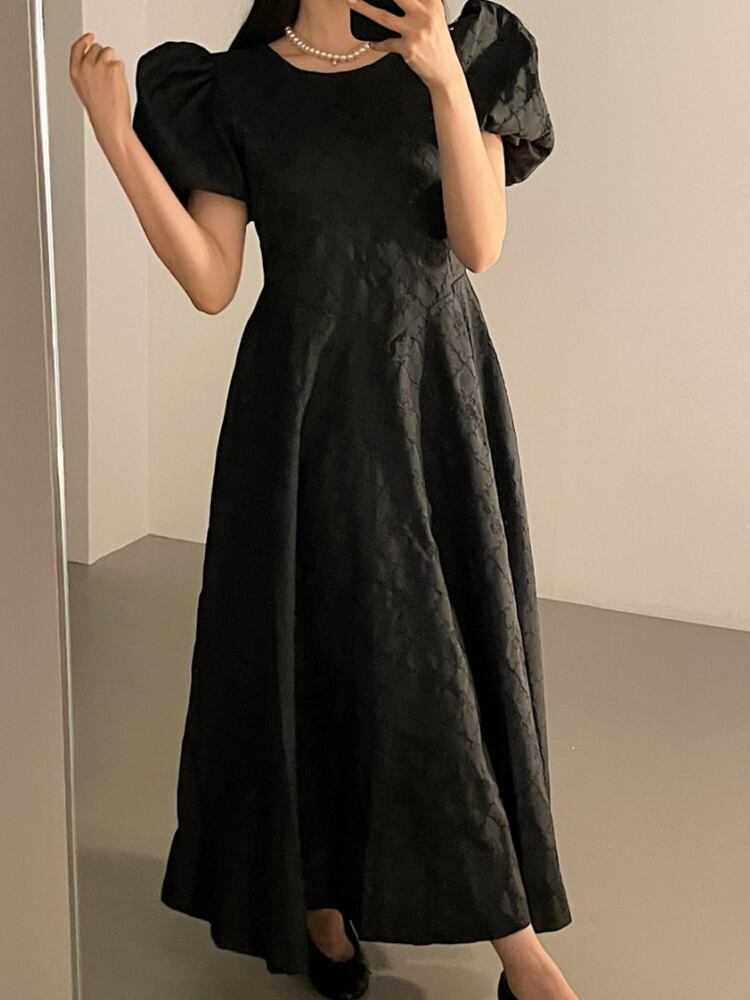 [EWQ] ジャカード ドレス夏潮パフ スリーブ ロング ドレス優しい気質 Vestidos 47 サマー 夏物