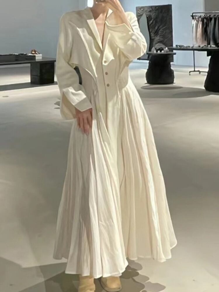 [EWQ] パッチワーク ドレス長袖ウエスト プリーツ ドレス夏優しい気質ローブ ロング サマー 夏物