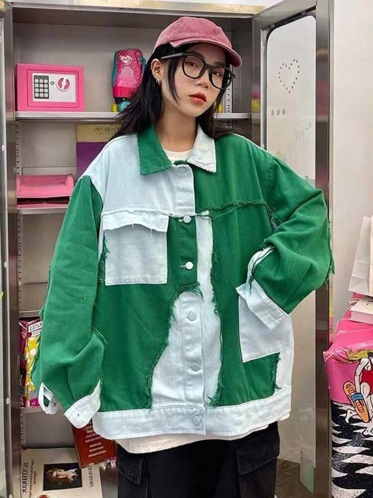 【EWQ】ストリート シングル ブレスト パッチワーク ビッグサイズ スプライス デニム ジャケット カーディガン コート ストリート 春 秋 トップス スプリング 春物 オータム 秋物