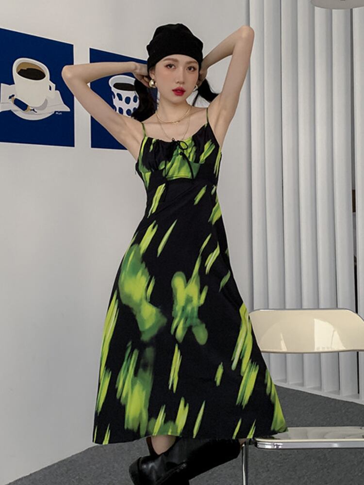 [EWQ] セクシーレースアップ コントラスト スリング ドレス夏タイダイ ノースリーブ ドレス潮 Vestido 531 サマー 夏物