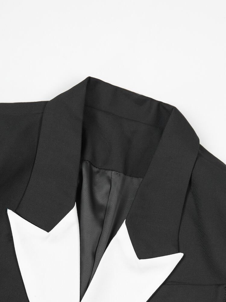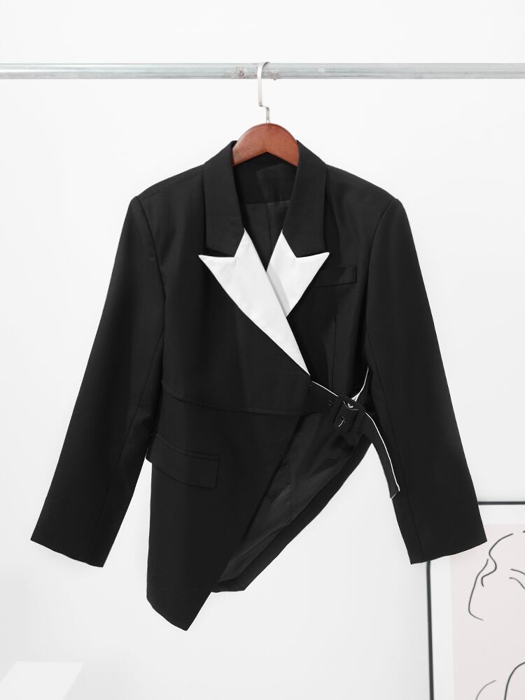 [EWQ] ブレザー コート コントラスト色非対称パッチワーク ノッチ包帯スーツ ジャケット春潮シックブレザー スプリング 春物