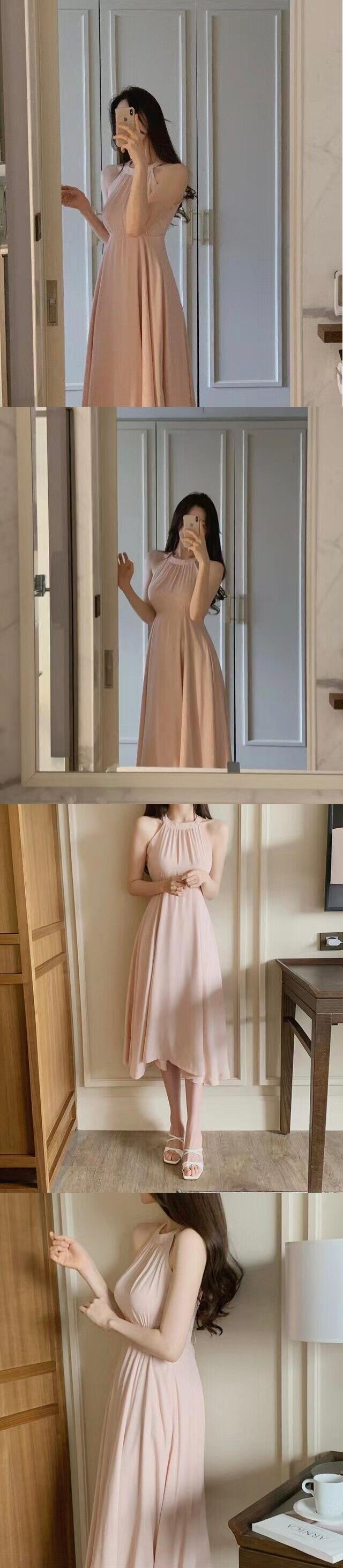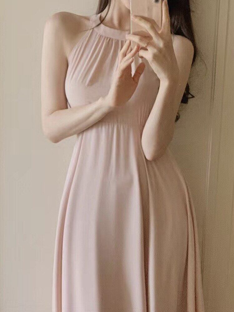 [EWQ] O ネック オフショルダー レースアップ ドレス ノースリーブ スリム プリーツ 無地 ドレス 夏 Vestido サマー 夏物 Oネック ソリッドカラー