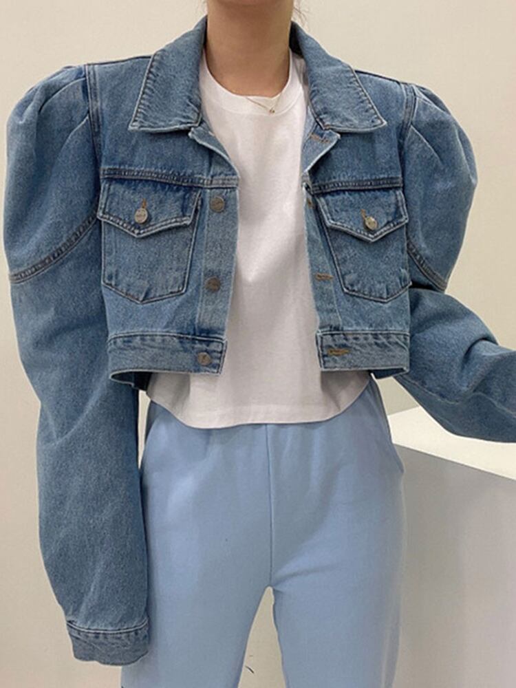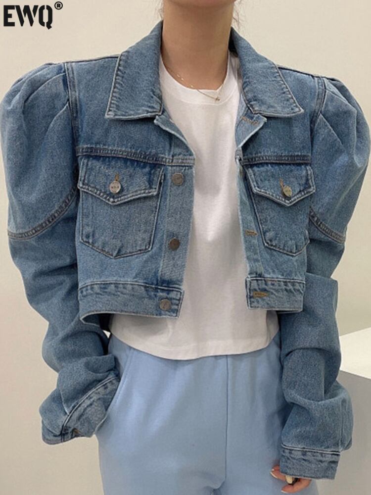 [EWQ] ポケットスプライシングデニムジャケット長袖シングルブレストショートジャケットコート春秋トップ 16Y8156 ロング スプリング 春物 オータム 秋物