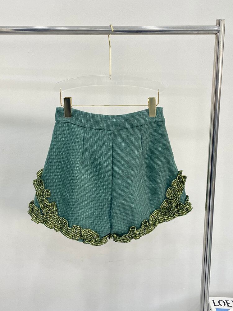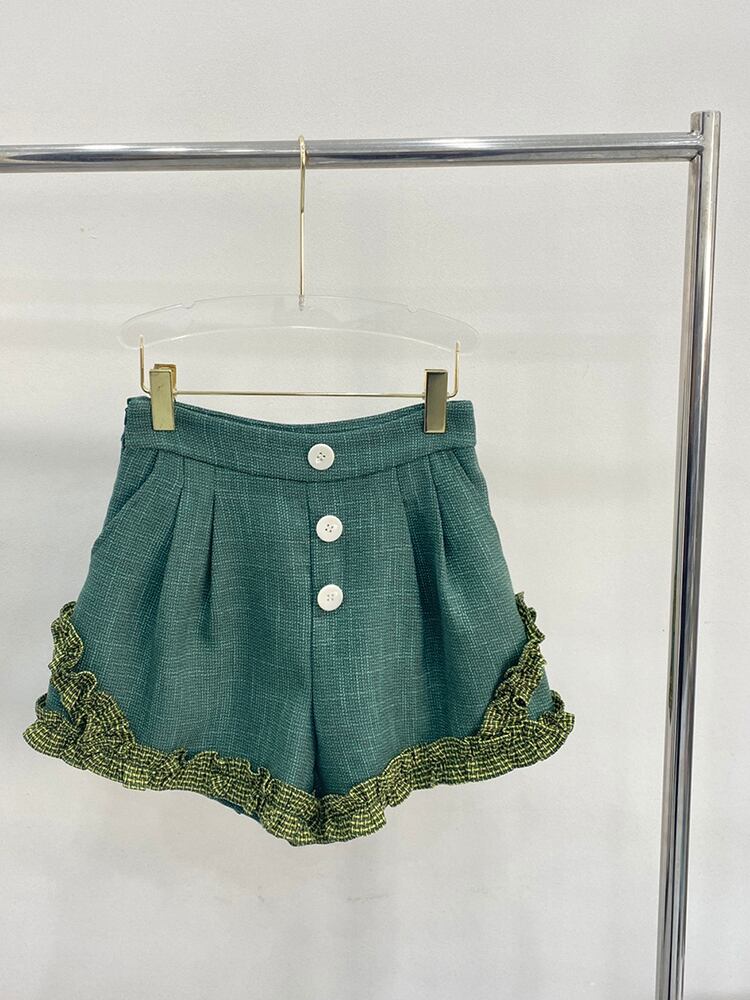 [EWQ] レディース ツーピース スーツ コントラスト ロングスリーブ ジャケット+シックボタン フリル スプライスド ショーツ 春 秋 長袖 スプリング 春物 オータム 秋物 ブルマー