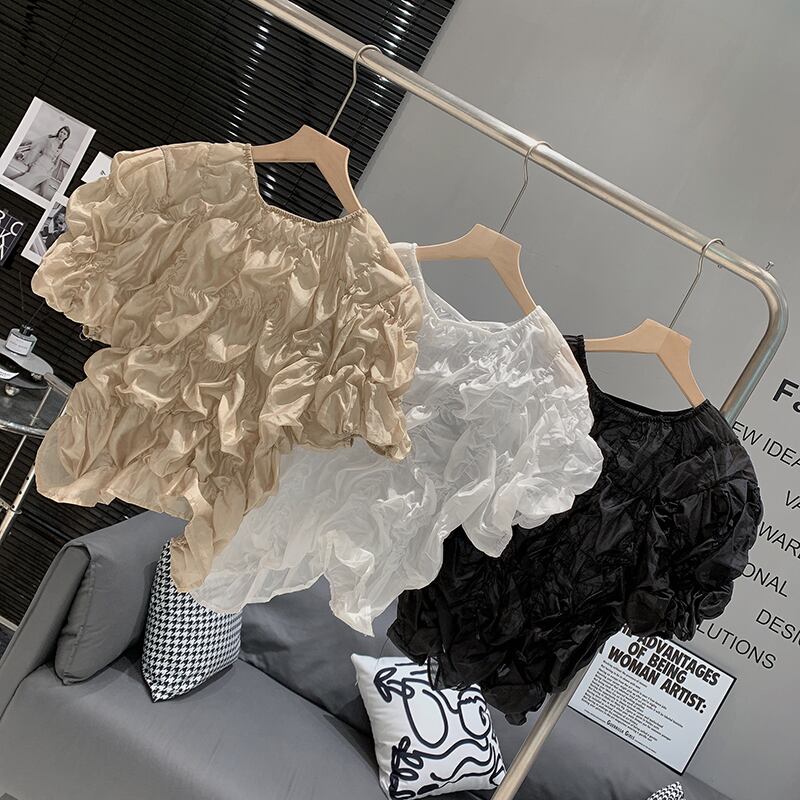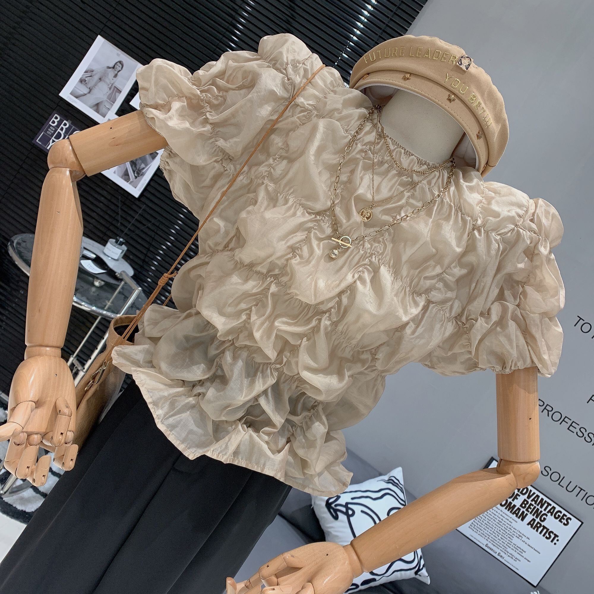 [EWQ] レディース シフォン シャツ 半袖 カーキ Oネック ゆったり カジュアル ブラウス トップス 夏 潮 トップス 8820 ショート ハーフスリーブ サマー 夏物