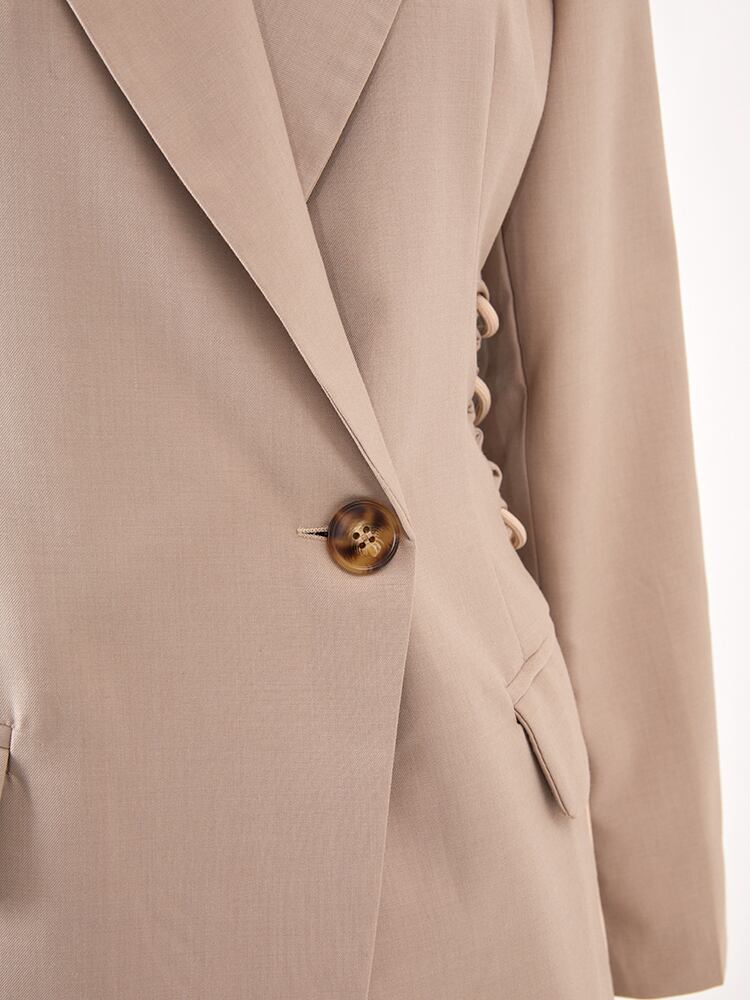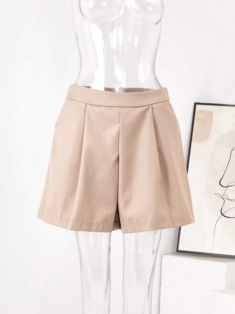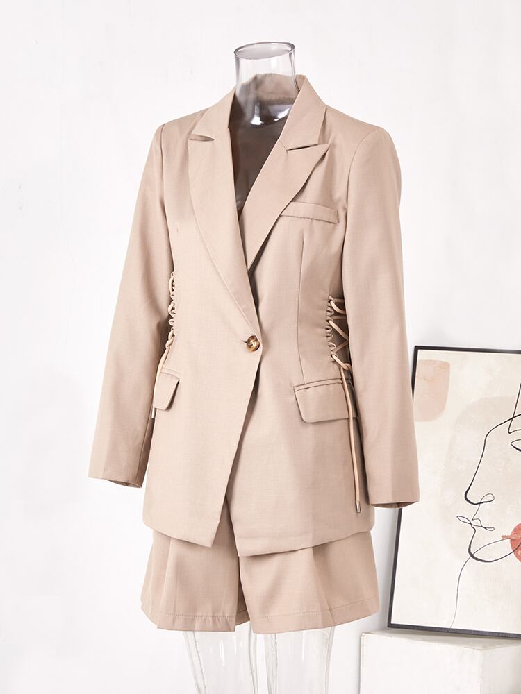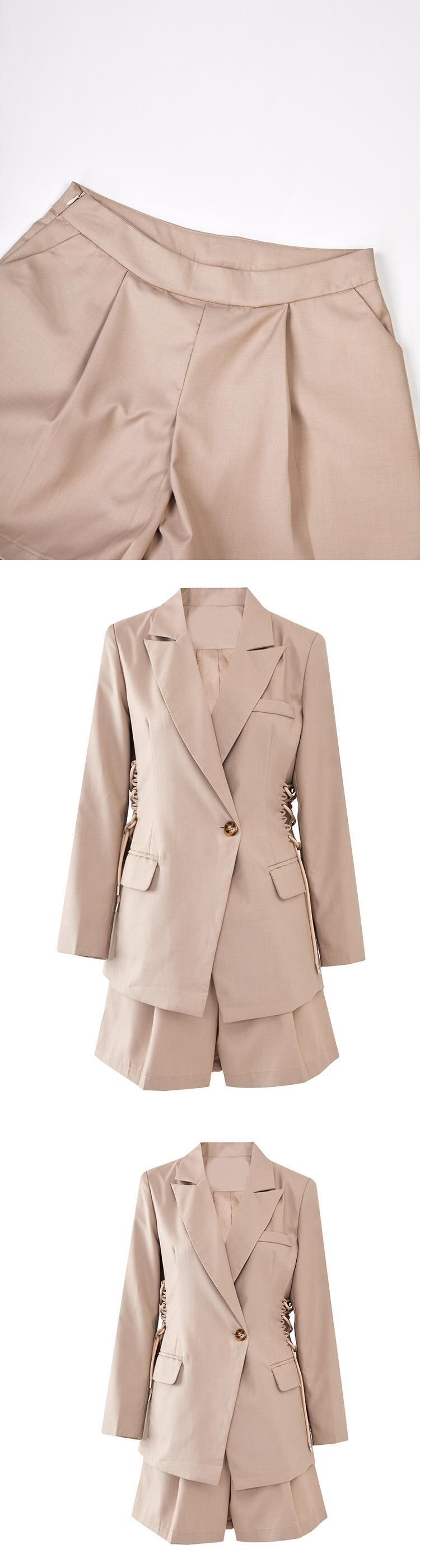[EWQ] レディース 巾着 ノッチ ブレザー コート + ウエスト プリーツ ショーツ ツーピース スーツ サマー セット 夏物 ブルマー