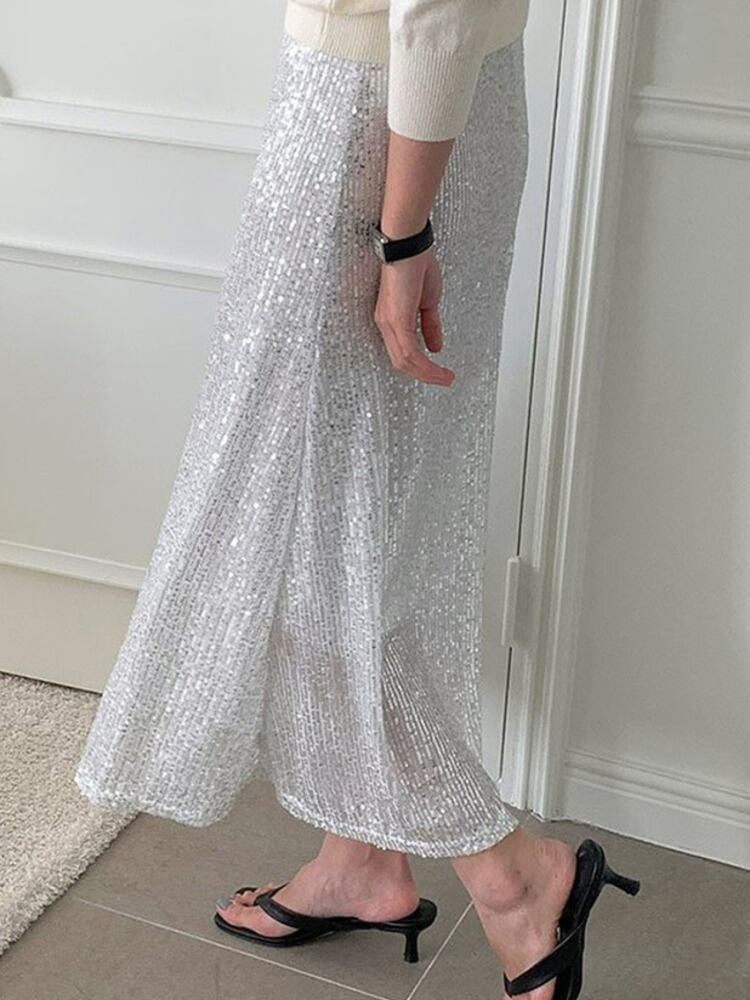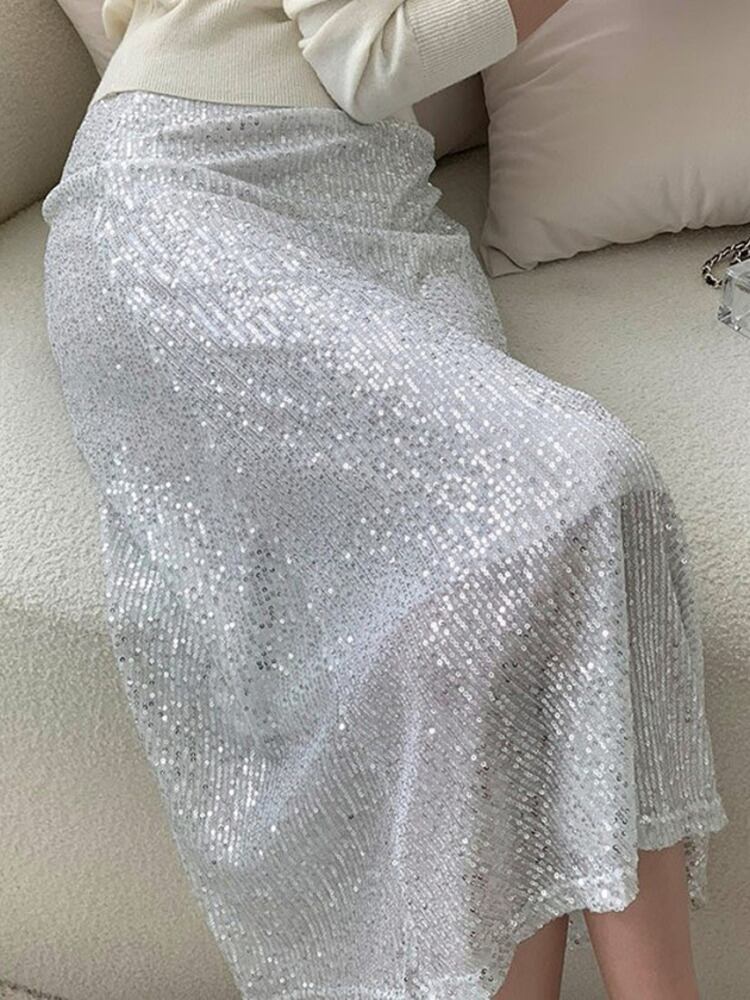 [EWQ] スパンコール A ライン スカート ウエストゴムオールマッチ服春夏潮ミッドカーフ スカート 8437 エラスティック 伸縮 スプリング 春物 サマー 夏物 Aライン