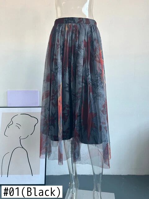 [EWQ] ウエストオールマッチ イレギュラー 夜会服 スカート レディース ドリームプリント レース メッシュ ロングスカート 春夏 16R3067 スプリング 春物 サマー 夏物