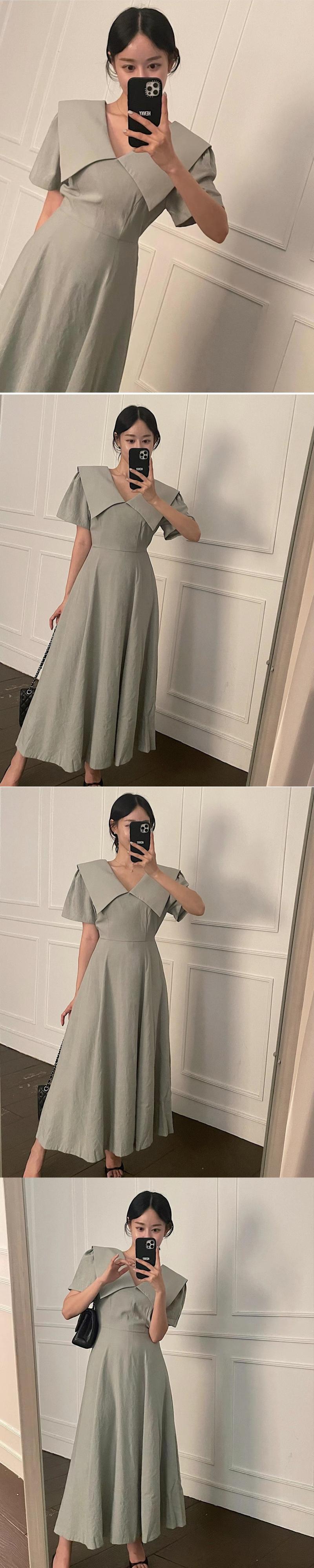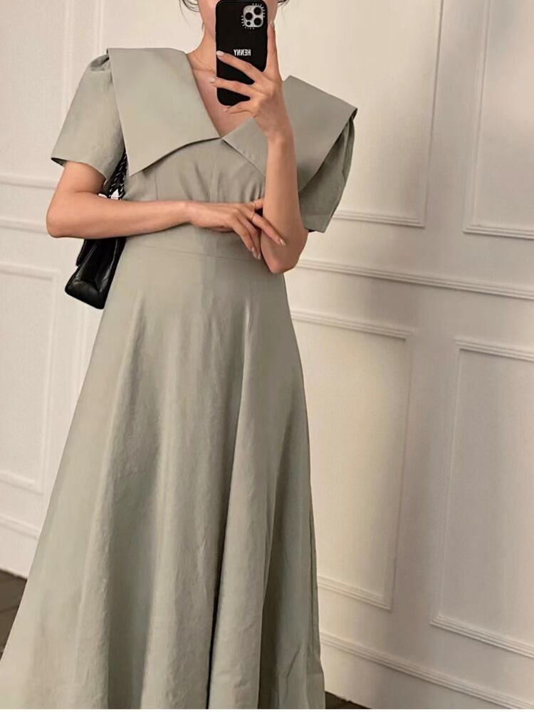 [EWQ] ラプル パフ スリーブ ミディ ドレス無地 A ライン パーティー ドレス夏 Vestido 16Y7926 サマー 夏物 Aライン ソリッドカラー