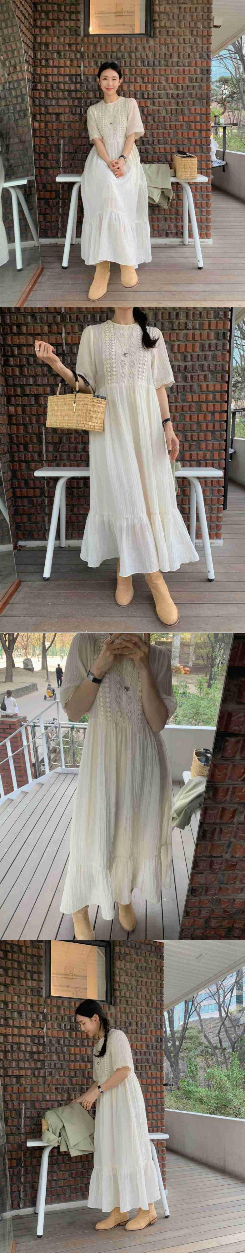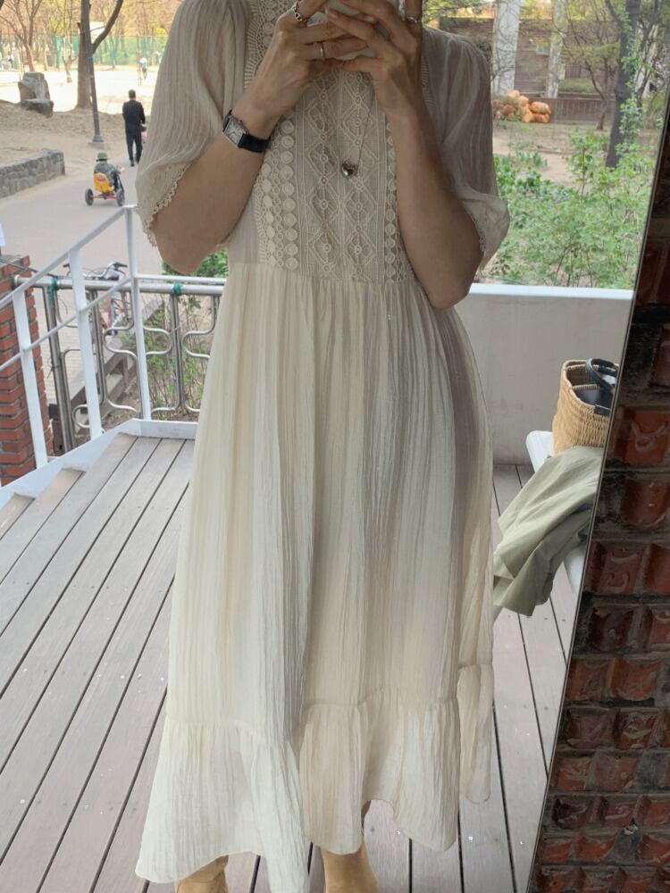 [EWQ] O Nec レース刺繍ドレス半袖フリルスプライスドレス夏潮因果 Vestido ショート ハーフスリーブ サマー 夏物
