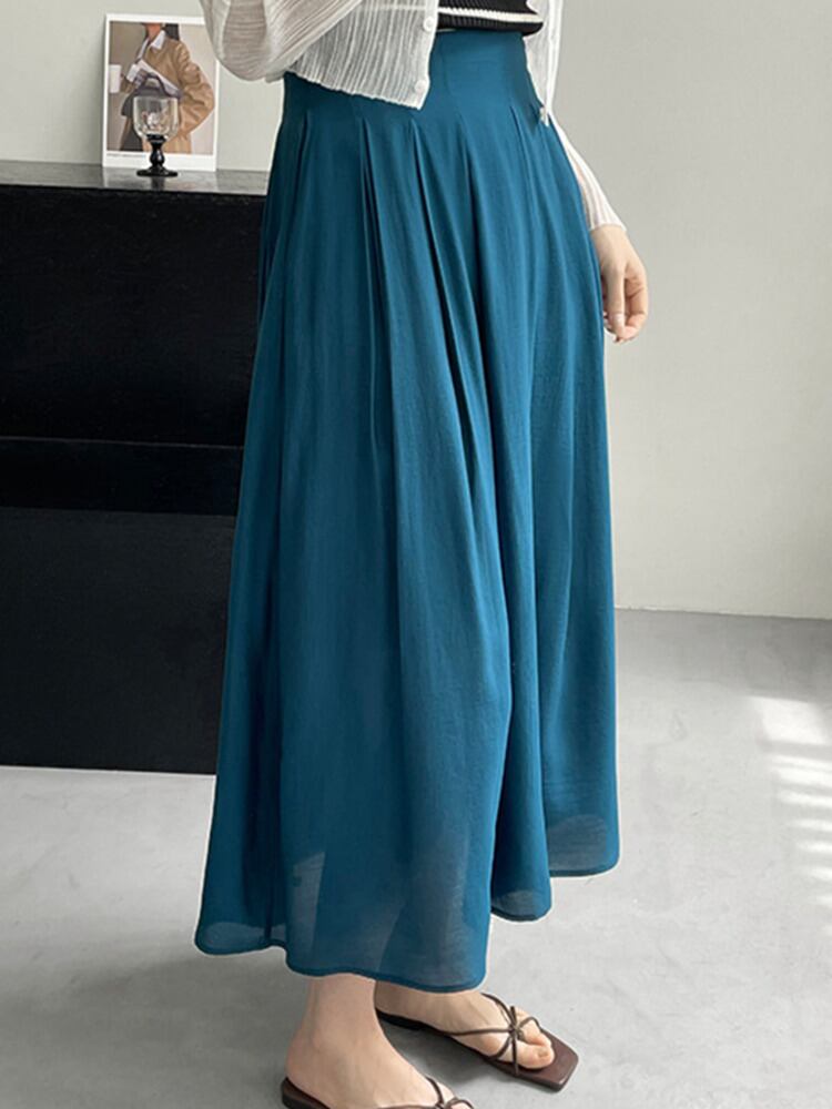 [EWQ] ウエストプリーツスカート無地ミッドカーフスカート夏潮オールマッチ服 16Y9231 サマー 夏物 ソリッドカラー