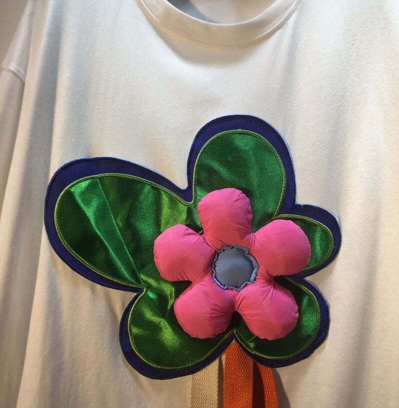[EWQ] スプライシング 3D フラワー Tシャツ コントラストカラー半袖ルーズ因果 Tシャツトップ夏潮 Tシャツ 070 ショート ハーフスリーブ サマー 夏物 フラワーデザイン