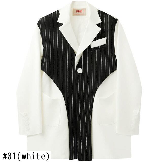 【EWQ】ブレザーコート レディース ストライプ コントラストカラー イレギュラーパッチワーク 長袖 スーツジャケット 春秋潮 ロング スプリング 春物 オータム 秋物