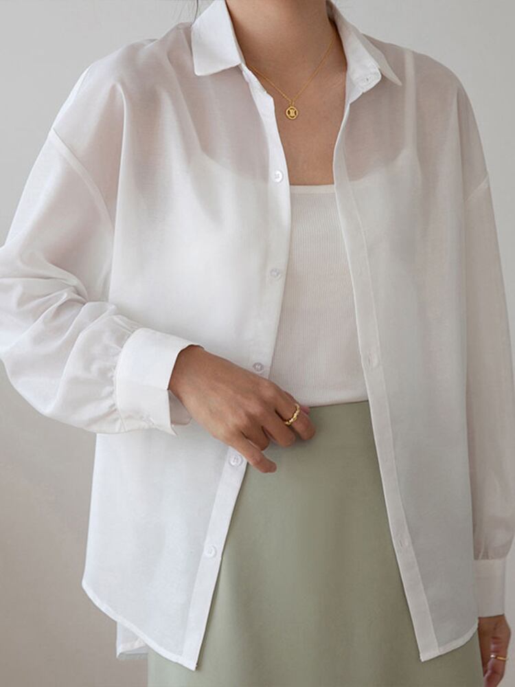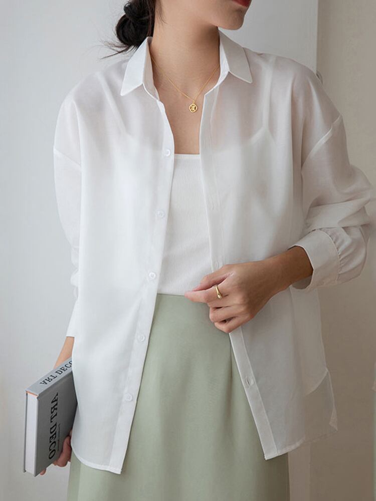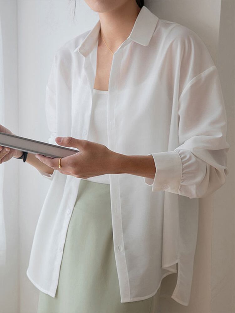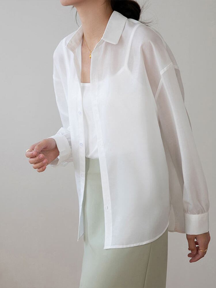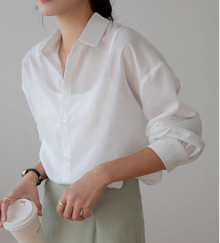 [EWQ] レディース パースペクティブ シャツ ホワイト ロング スリーブ シングル ブレスト オーバーサイズ ブラウス トップ サマー タイド トップス 16Y9184 長袖 夏物