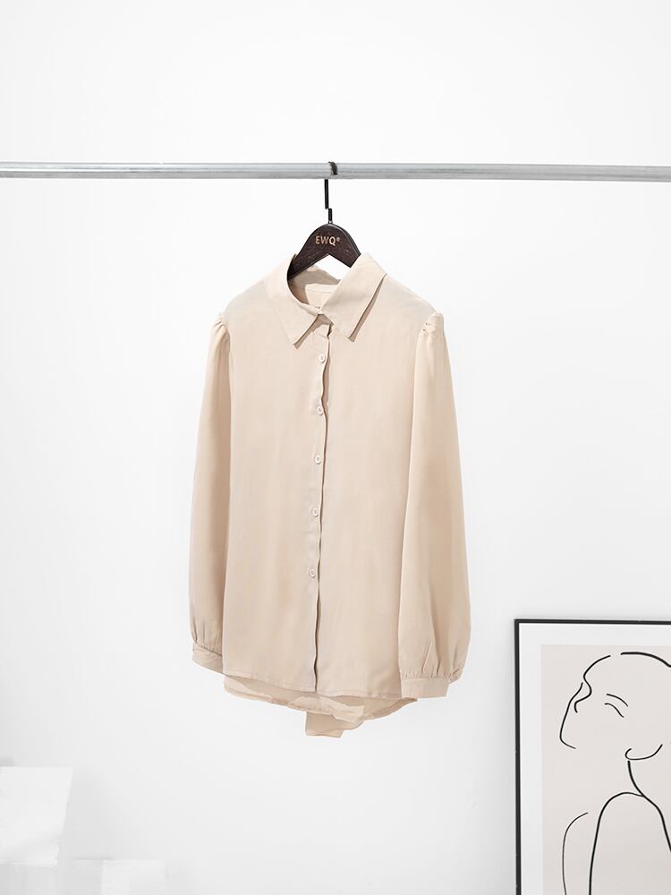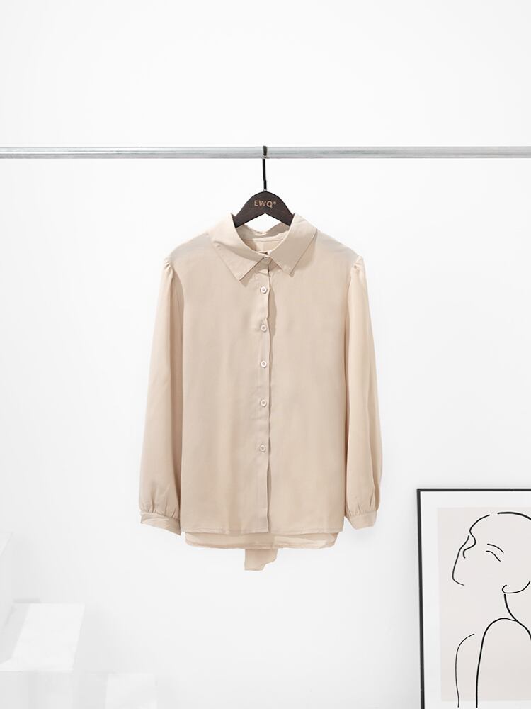 [EWQ] バッククロスボウタイシャツ レディース ルーズラペル 無地 ブラウス トップス 春潮 長袖 16Y7689 ロング リボン スプリング 春物 ソリッドカラー
