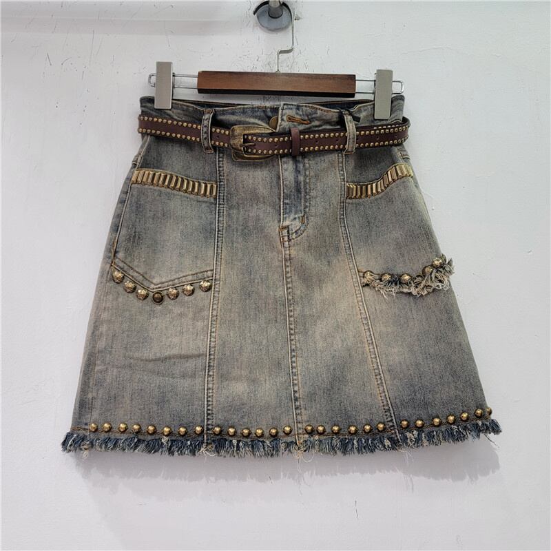 [EWQ] ダイヤモンド埋め込みデニムスカートビーズウエストテルラップヒップショートスカート夏潮 サマー 夏物