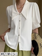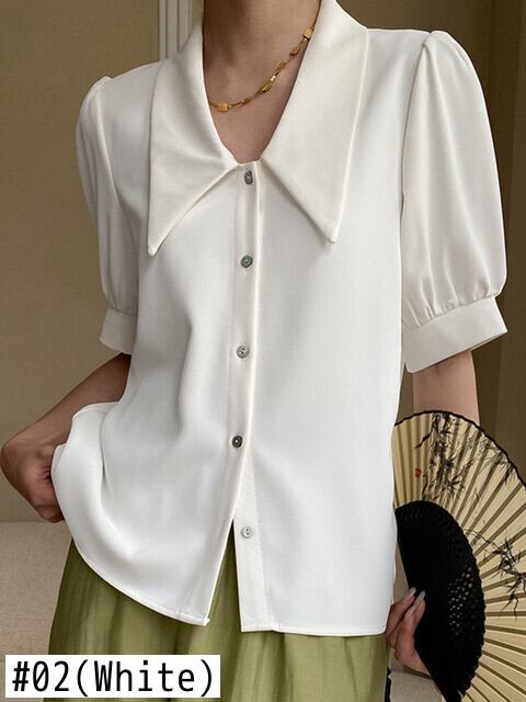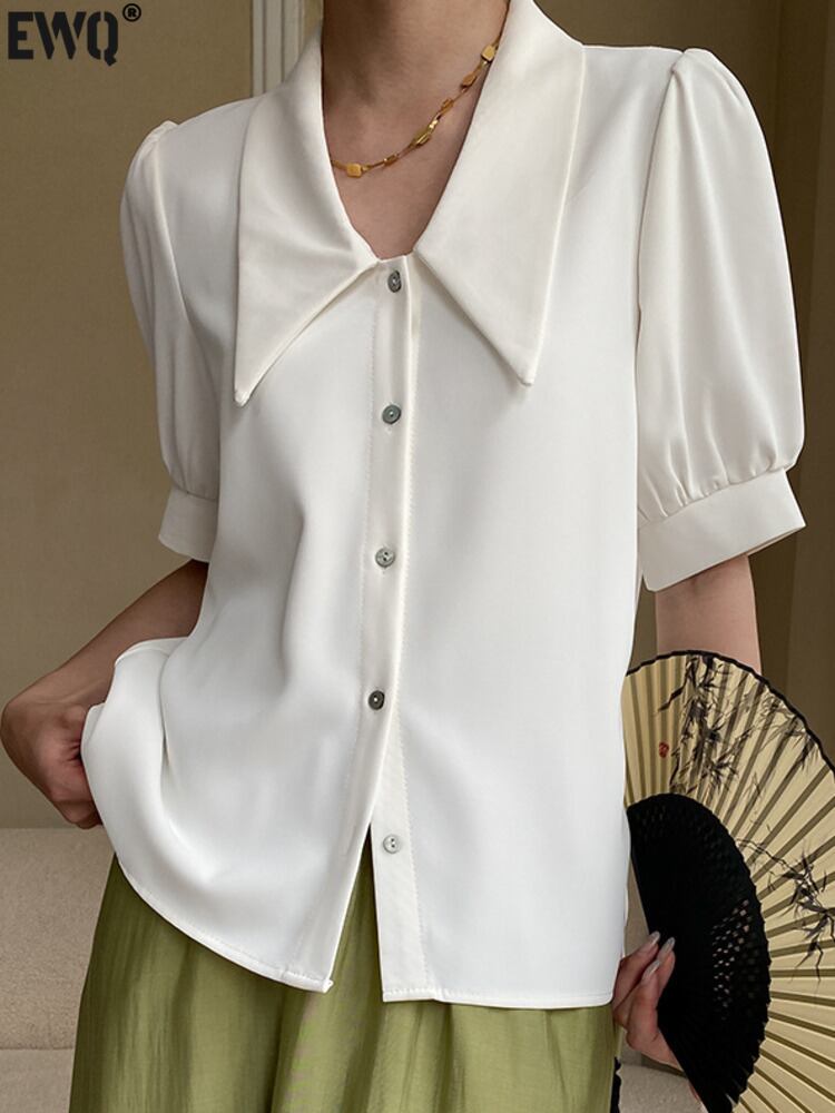 [EWQ] ラペルシャツパフスリーブシングルブレストブラウス夏潮優しい気質トップス サマー 夏物