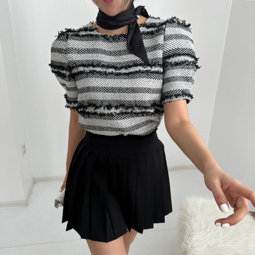 [EWQ] コントラストストライプテルニットシャツ O ネックルーズカジュアル半袖ブラウストップ夏潮トップス ショート ハーフスリーブ サマー 夏物 Oネック