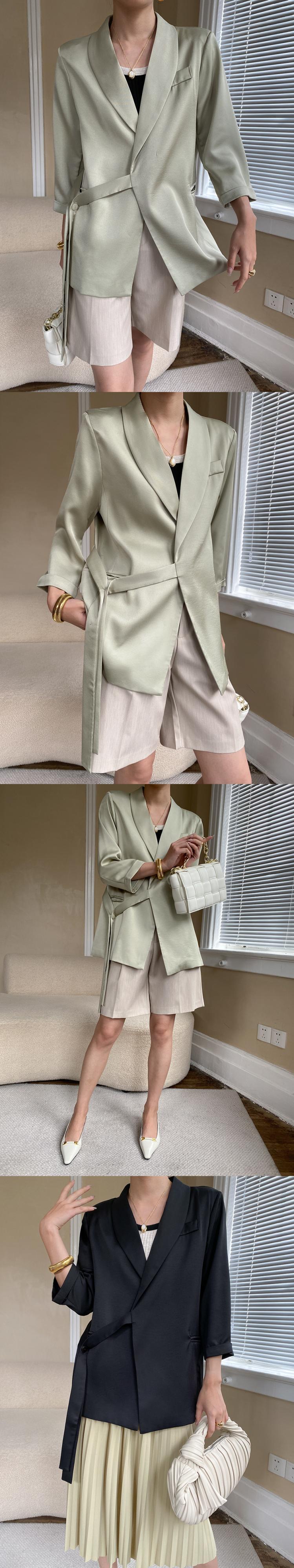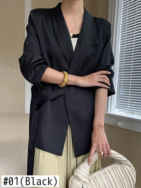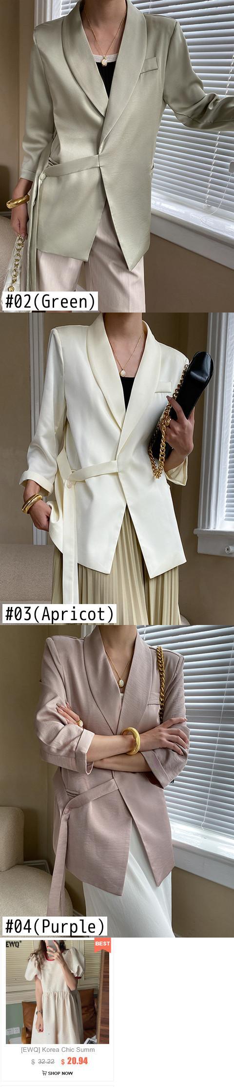 [EWQ] サイド包帯ブレザーコート夏春潮長袖オフィスレディスーツジャケットブレザー Y9068 ロング スプリング 春物 サマー 夏物 ソリッドカラー 会社 学校 通勤や通学にも
