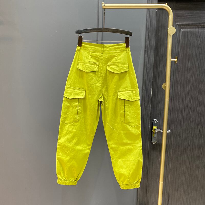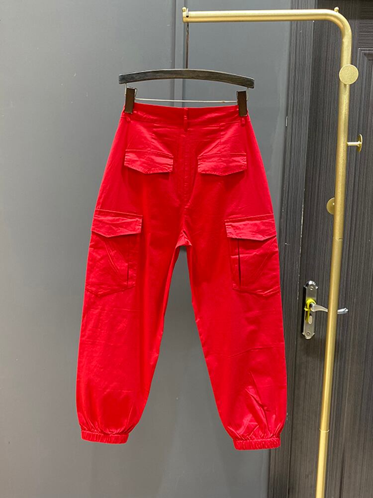 [EWQ] レッドカーゴパンツウエストポケットスプライシングストリートソリッドカラーズボン春夏潮 6Y8999 スプリング 春物 サマー 夏物