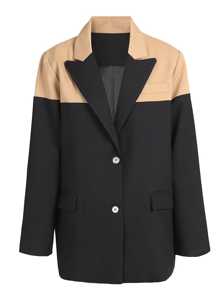 【EWQ】シック レディース 長袖 ステッチ OL ブレザー パッチワーク スーツ 春 秋 ロング スプリング 春物 オータム 秋物 会社 学校 通勤や通学にも