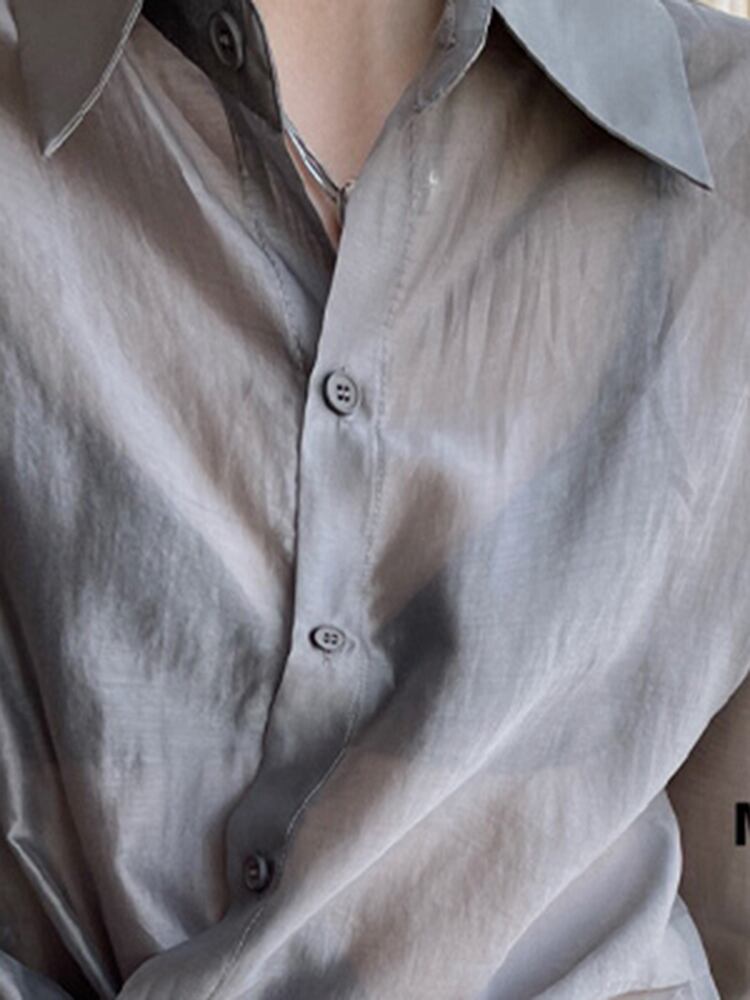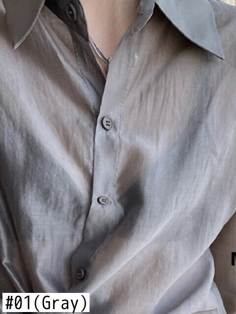 [EWQ] 視点シャツ長袖薄いサイドボタンルーズ因果ブラウストップ夏潮トップ 16Y8956 ロング サマー 夏物 ソリッドカラー