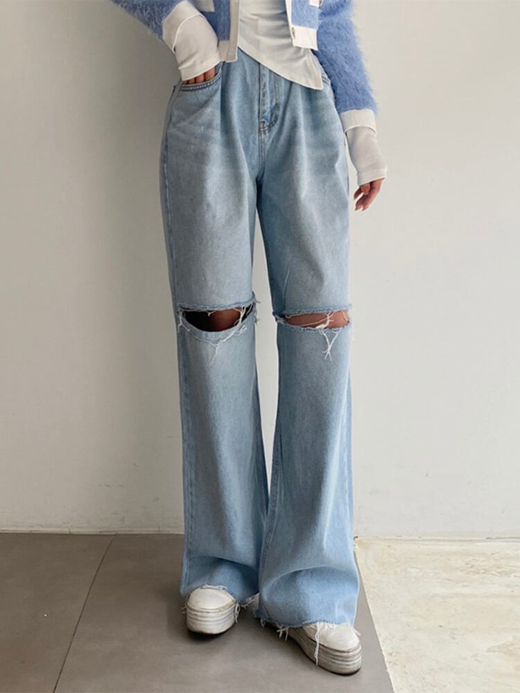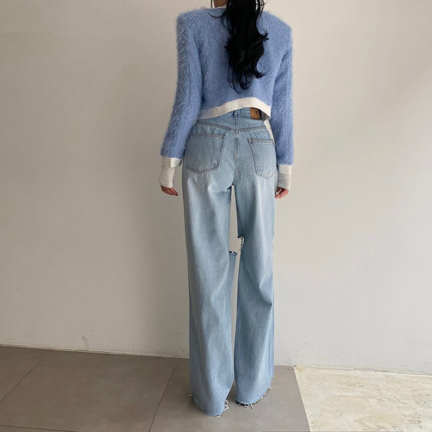 [EWQ] 調節可能ウエスト穴電話デニムパンツウエストストリートワイドレッグジーンズ夏潮ズボン 8882 サマー 夏物 アジャスタブル ワイドパンツ