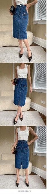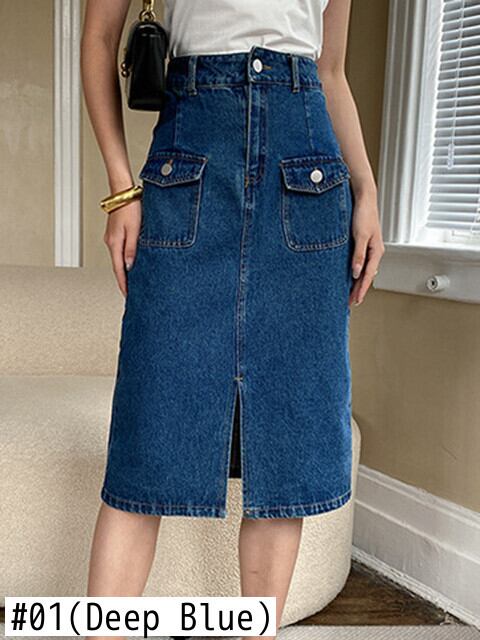 [EWQ] スプリットデニムスカートウエストポケットスプライシングストリートストレートスカート夏流行服 6Y9057 サマー 夏物