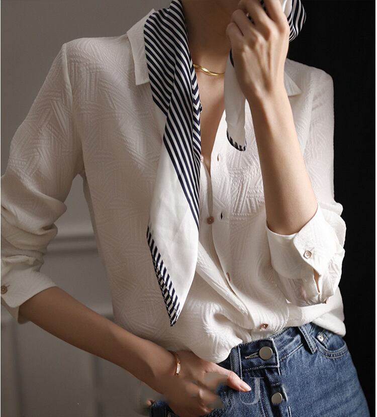 [EWQ] 高級白シャツジャガード刺繍長袖シングルブレストブラウス春潮オーバーサイズトップス 195 ロング ホワイト スプリング 春物
