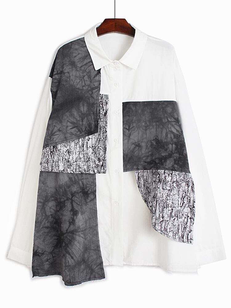 [EWQ] レディース ブラック ホワイト シャツ 長袖 コントラスト ストリートウェア シングルブレスト オーバーサイズ ブラウス 春潮トップ ロング スプリング 春物